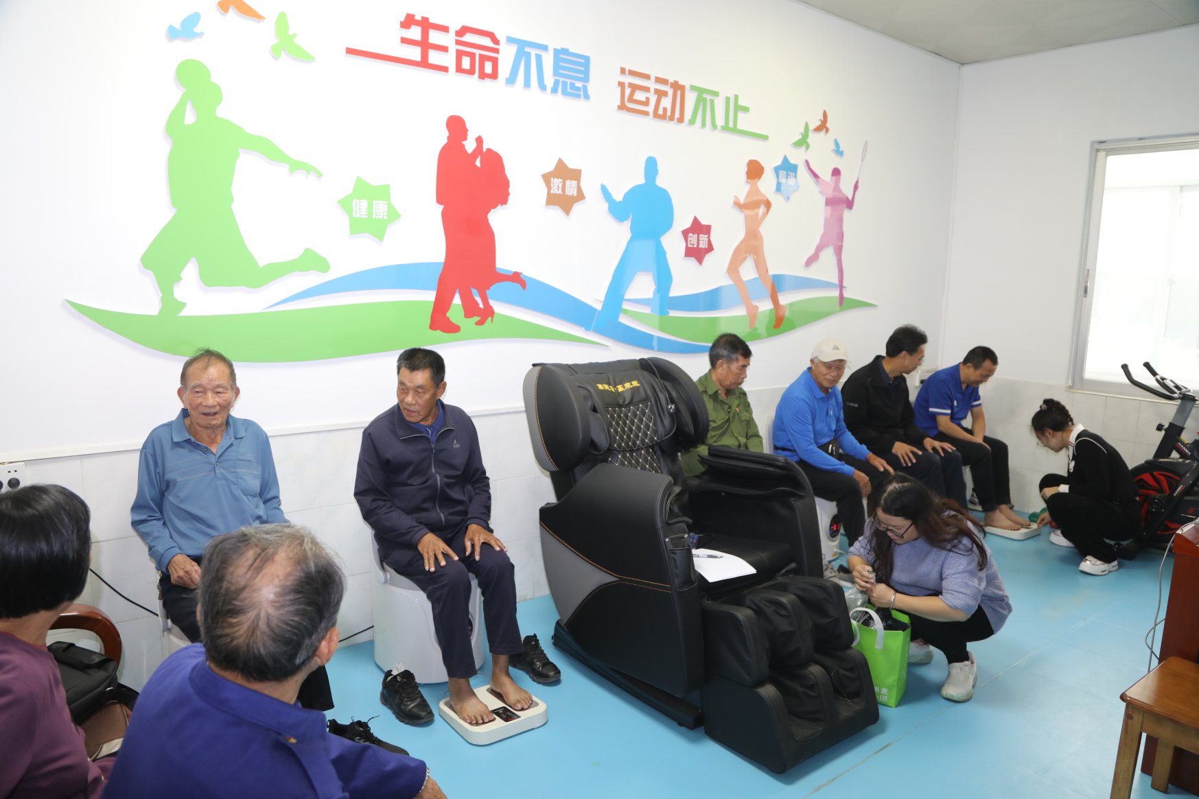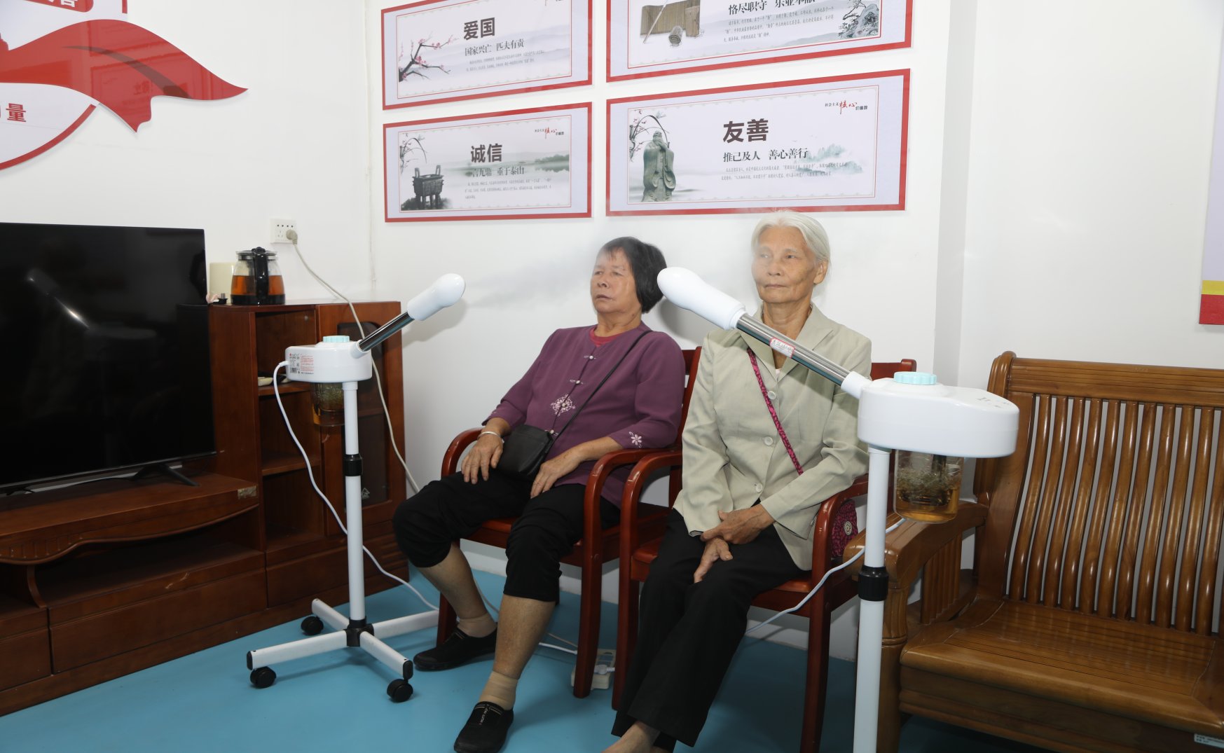 军休人员体验“艾灸凳+脉冲脚灸”理疗项目。宋谋春摄