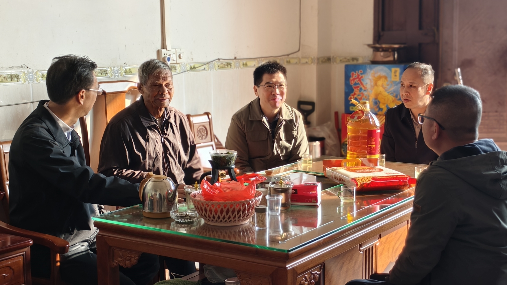 王幼林一行走访慰问了5名困难退役军人,每到一处,都为他们送去了米、油等生活物资和慰问金,详细了解他们的实际困难,并有针对性地给予帮助解决。在东兴市江平镇参战老兵黄振月家中,王幼林亲切与其交谈。黄振月今年78岁,左腿截肢并患有肢体三级残疾,其妻视力二级残疾,两人均无劳动力;儿子黄确患肝硬化,近期住院治疗花费较大,家庭负担沉重。王幼林仔细询问医疗报销、生活补助等政策落实情况,注意到老人家中存在实际困难,当即叮嘱随行人员协调属地服务中心“建立定期帮扶机制,跟进医疗与生活保障”。