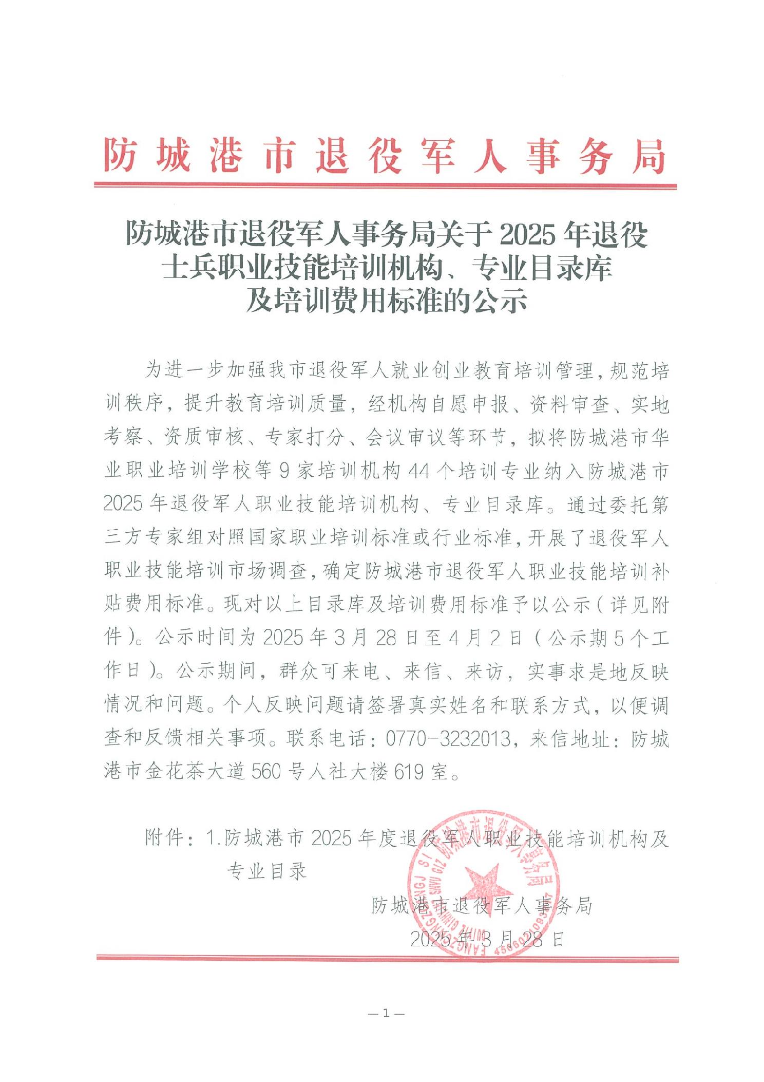 关于2025年退役士兵职业技能培训机构、专业目录库及培训费用标准的公示