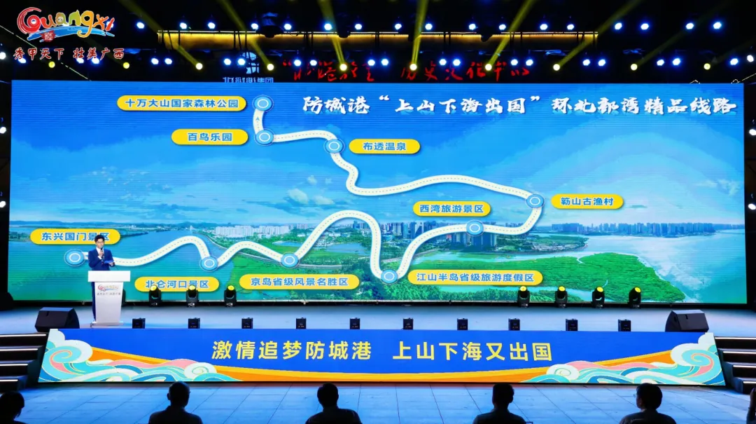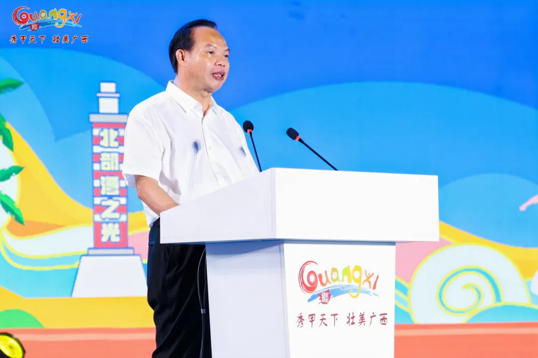 广西壮族自治区文化和旅游厅、自治区产业园区改革发展办公室、自治区海洋局、防城港市人民政府、北海市人民政府、钦州市人民政府,广西南宁、桂林、防城港、北海、钦州、玉林、梧州、贵港、贺州、来宾、河池、百色、崇左和广东湛江、茂名、阳江市文化和旅游行政部门,以及广西旅游协会、广西乡村旅游行业协会、广西烹饪餐饮行业协会、桂林市旅游景区协会、贵州省中国青年旅行社有限公司、贵阳市旅游行业协会旅行社分会、湛江市旅游协会等单位的领导嘉宾出席活动。自治区文化和旅游厅一级巡视员赖富强、防城港市人民政府副市长禤东分别发表了致辞。