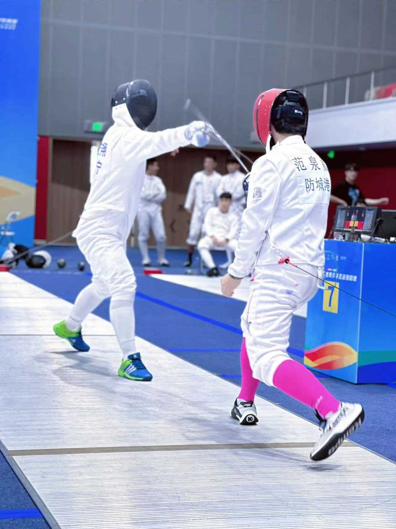 上图为我市运动员在2023年广西青少年击剑锦标赛比赛现场