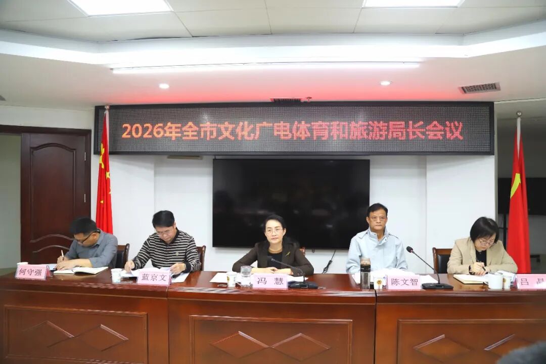 近日,2026年全市文化广电体育和旅游局长会议召开。会议以习近平新时代中国特色社会主义思想为指导,深入学习贯彻党的二十大和二十届历次全会精神,学习践行习近平文化思想,落实习近平总书记关于体育强国、旅游发展的重要论述和关于广西工作论述的重要要求,贯彻落实全国、全区相关宣传、文化广电体育和旅游工作会议精神,总结2025年工作,部署2026年任务,全力推进2027年广西文化旅游发展大会筹备和文化旅游强市建设。
