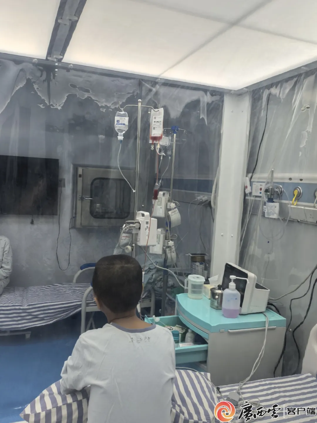 2025年10月23日,浩浩在防城港国际医学开放试验区地中海贫血移植仓内接受输注外周血干细胞。防城港市妇幼