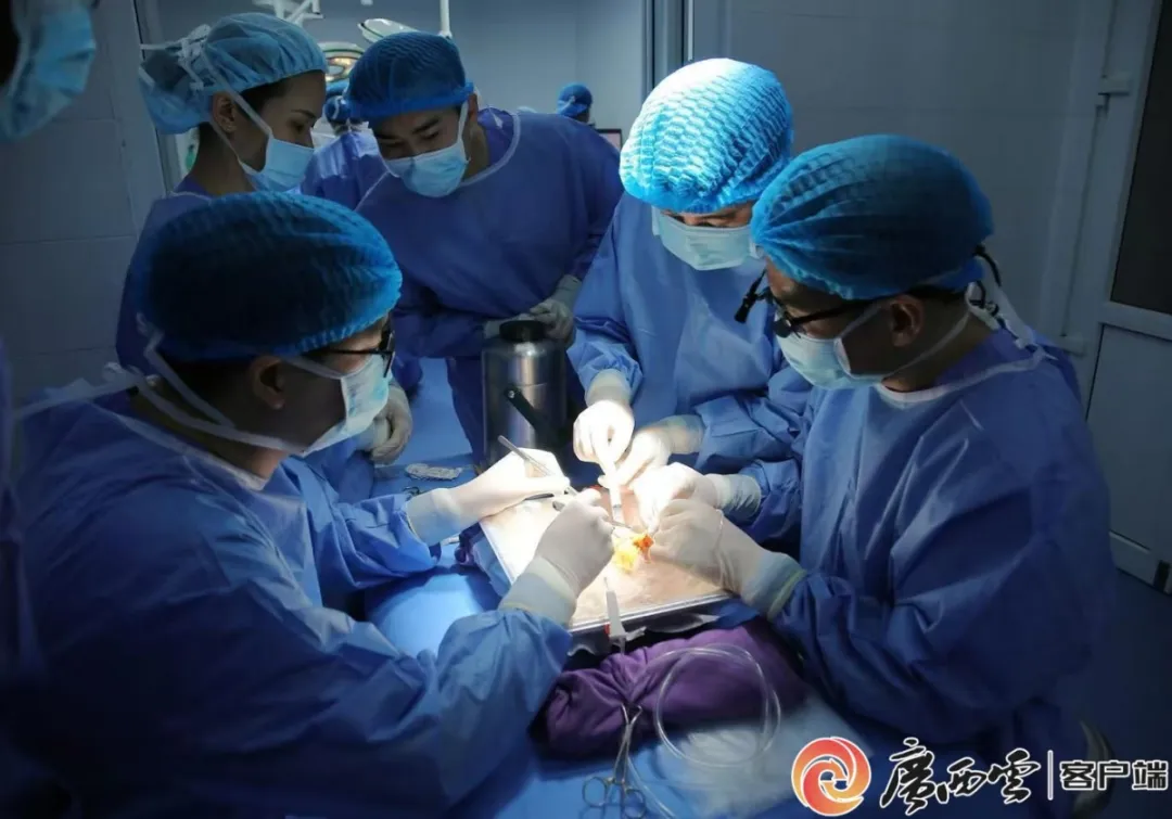 广西医科大学第一附属医院医疗团队在为患者范红军手术。广西医科大学第一附属医院供图