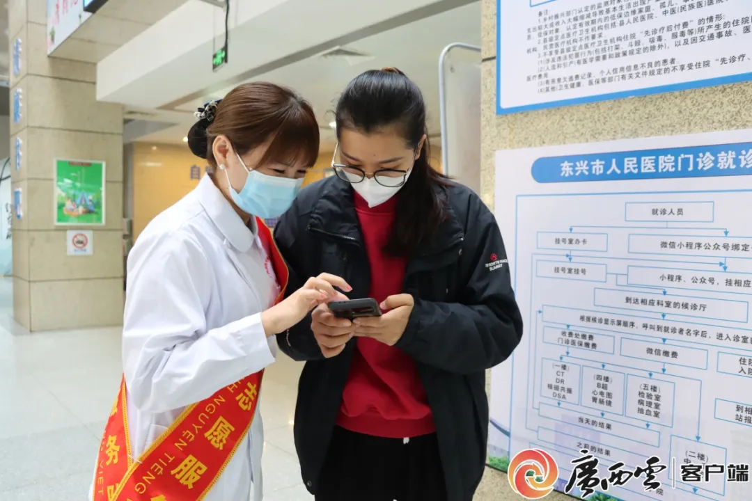 志愿者正为越南籍患者提供服务。东兴市人民医院供图