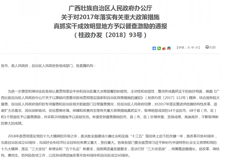 对2017年落实有关重大政策措施真抓实干成效明显地方予以督查激励的通报