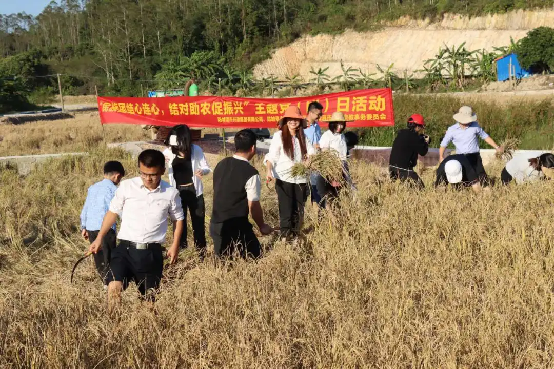 11月14日下午,在市兴港集团党委指导下,集团工会、团支部与下属市兴港农业公司联合多个市直单位组织50多名党员和志愿者在港口区光坡镇彭公角村牛角冲大岭开展“民族团结心连心,结对助农促振兴”主题党(团)日活动。