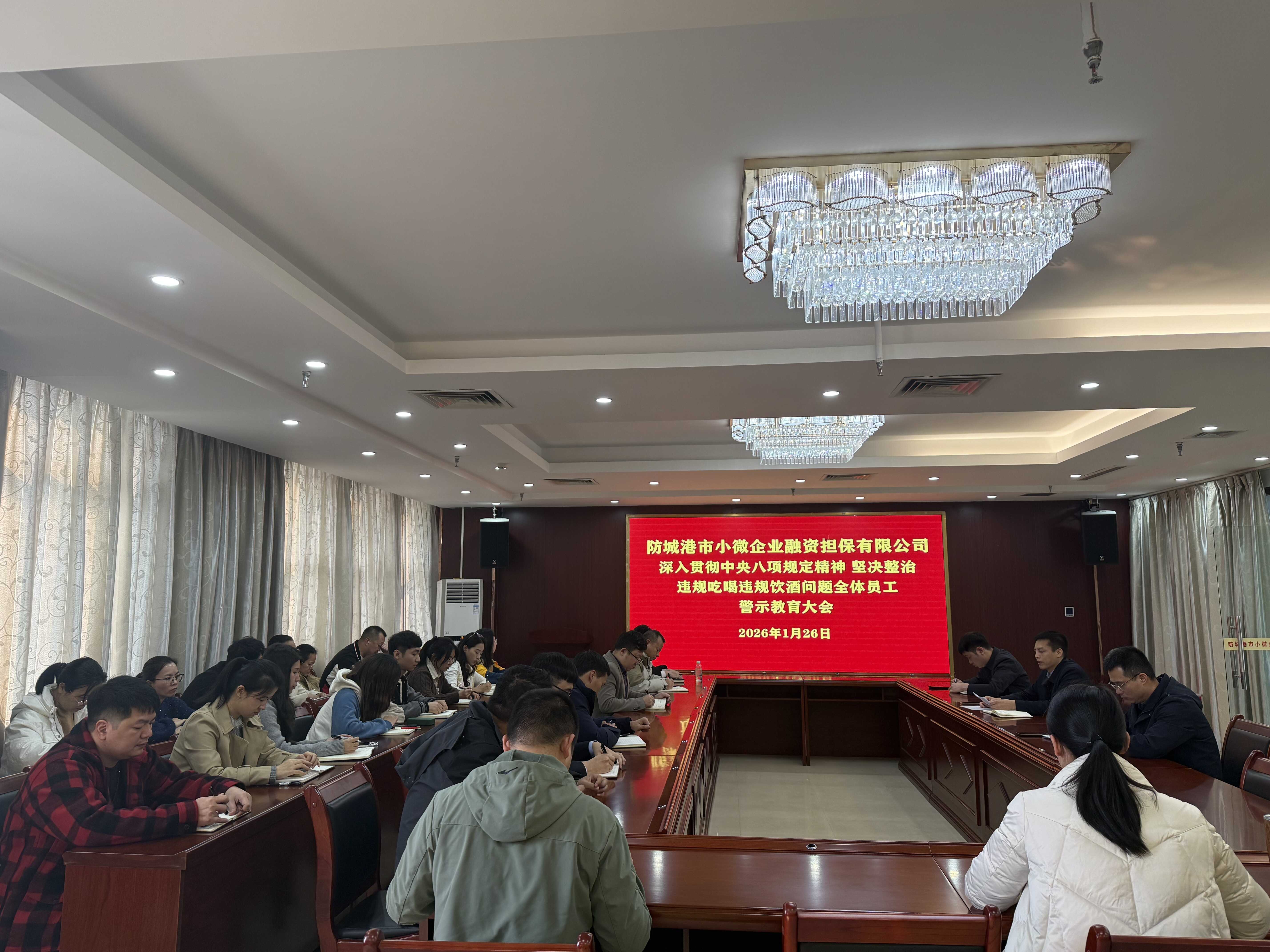 筑牢作风防线 涵养清风正气——防城港市小微企业融资担保有限公司召开贯彻中央八项规定精神暨整治违规吃喝饮酒问题警示教育会