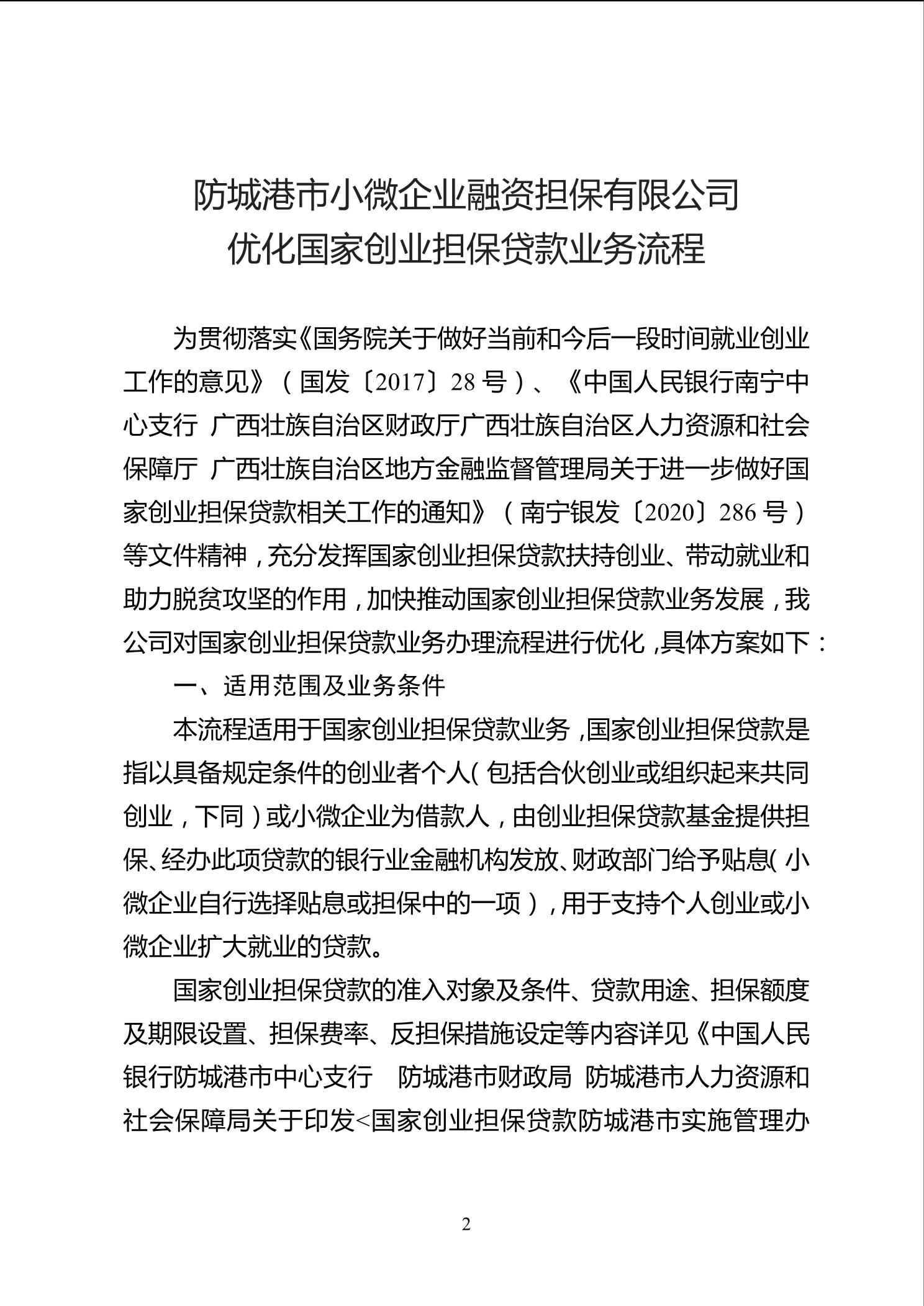 防城港市小微企业融资担保有限公司优化国家创业担保贷款业务流程
