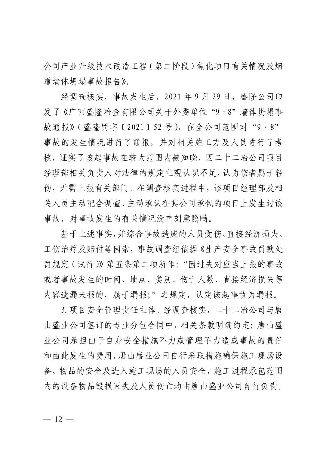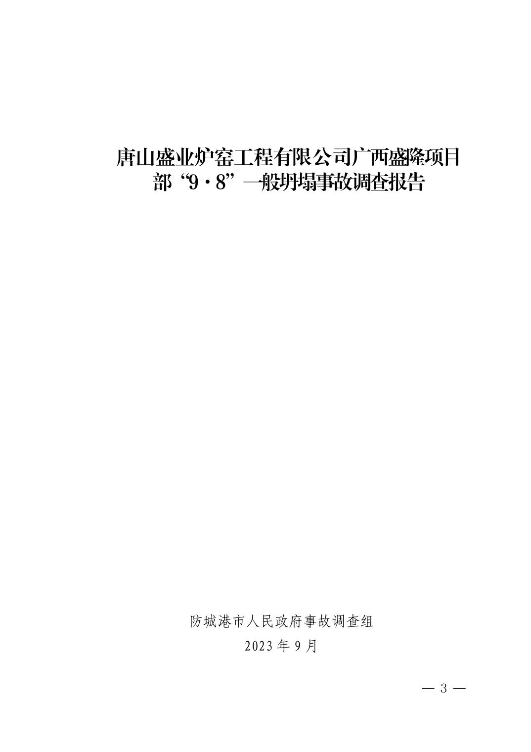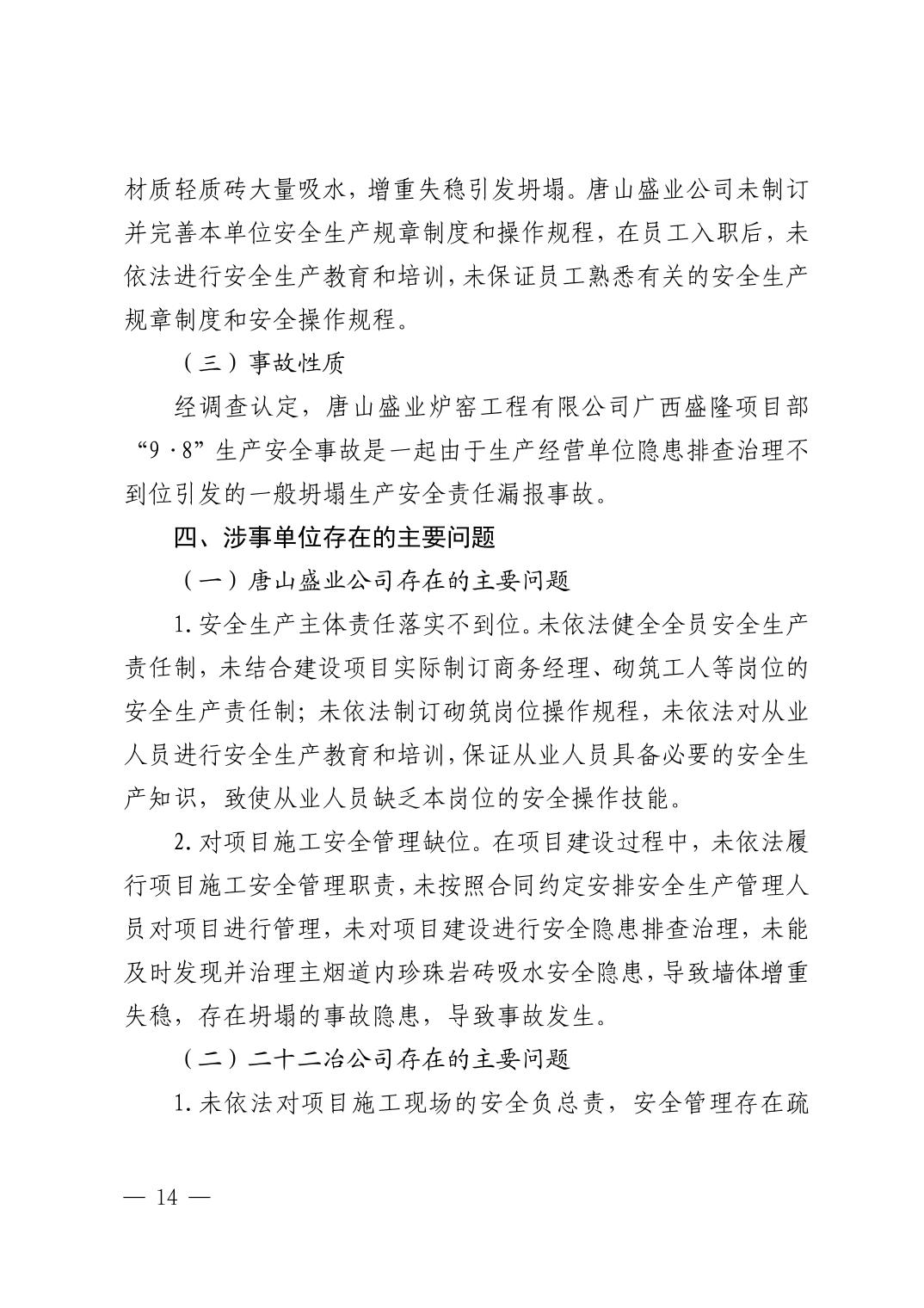 唐山盛业炉窑工程有限公司广西盛隆项目部“9·8”一般坍塌事故调查报告