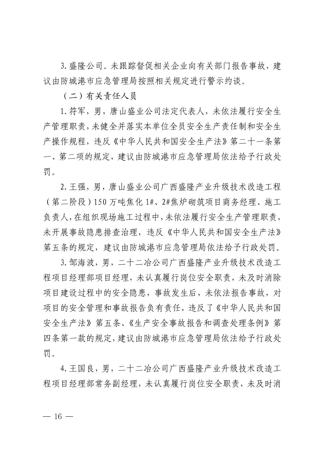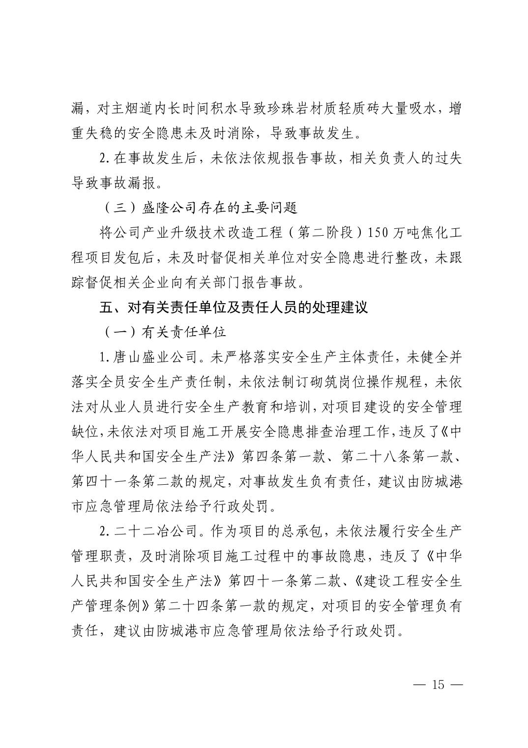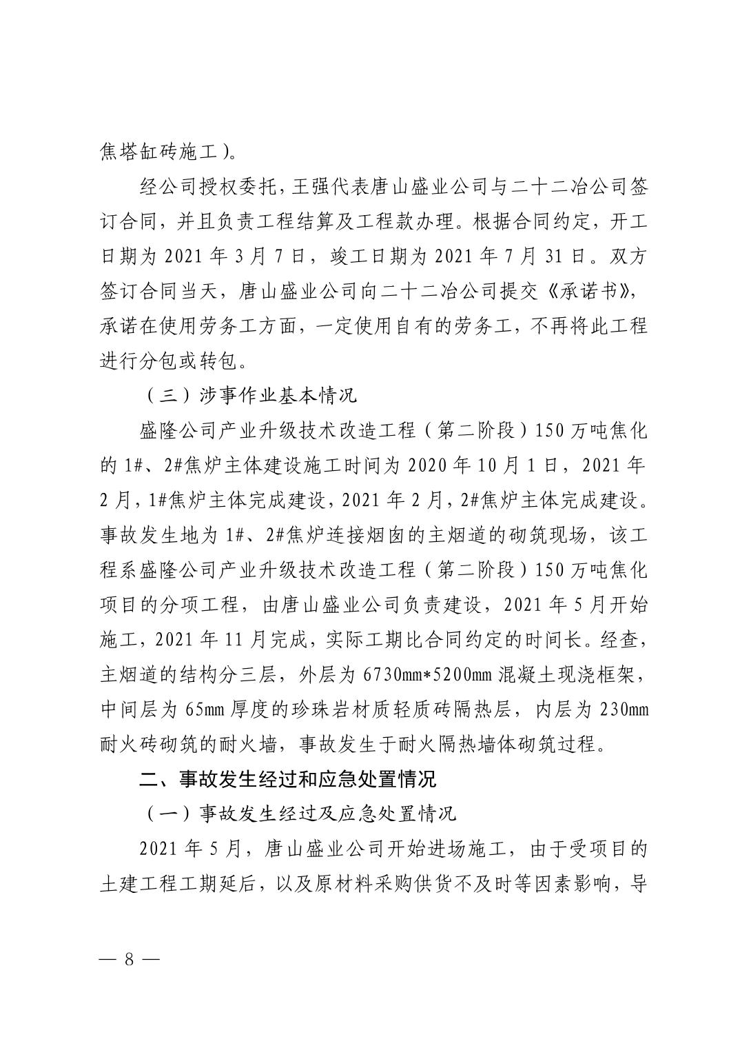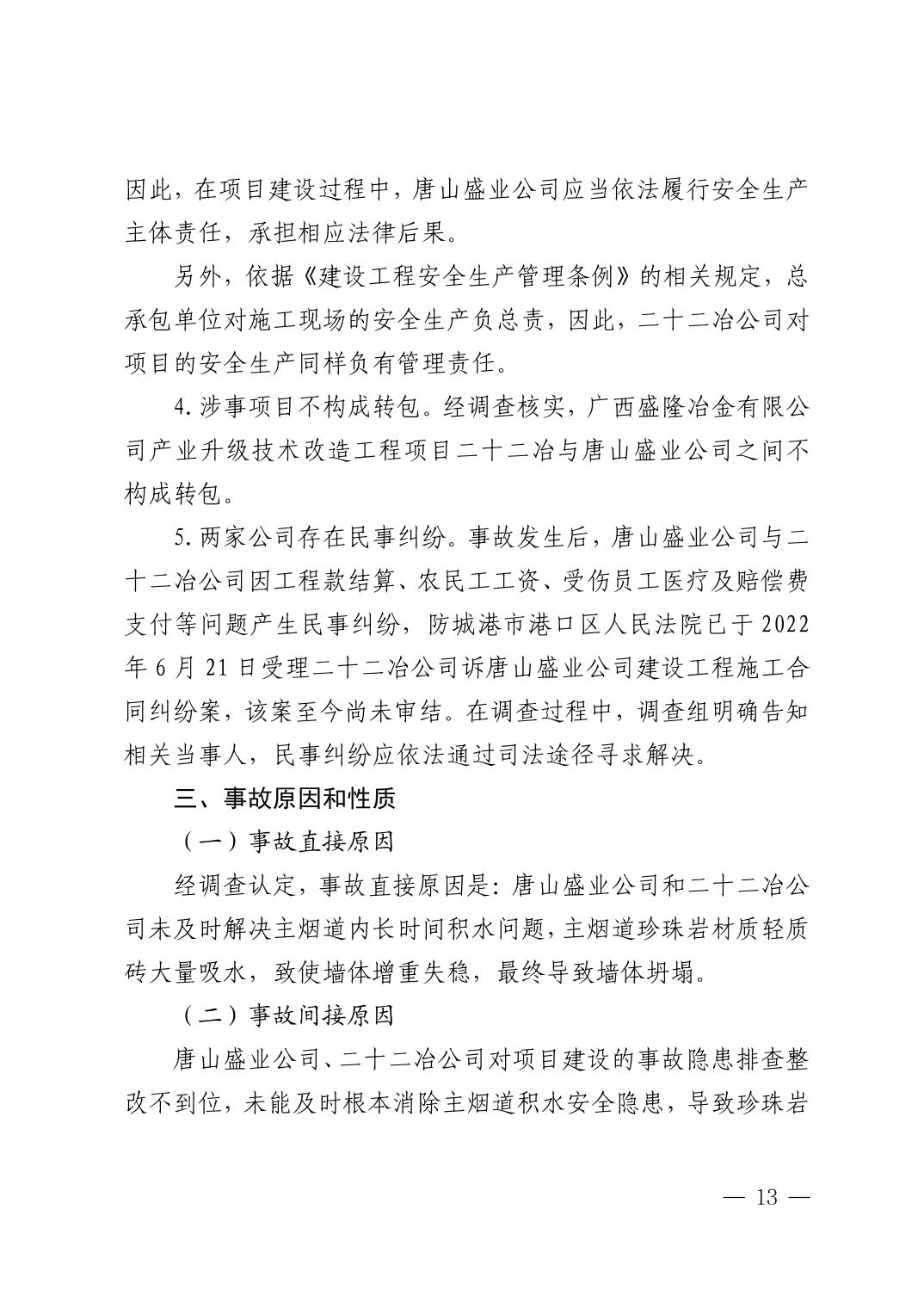 唐山盛业炉窑工程有限公司广西盛隆项目部“9·8”一般坍塌事故调查报告