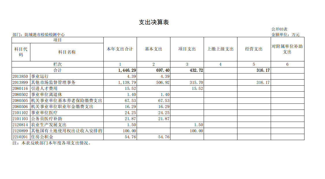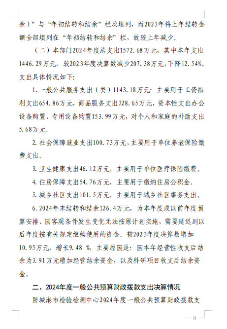 防城港市检验检测中心2024年度部门决算公开