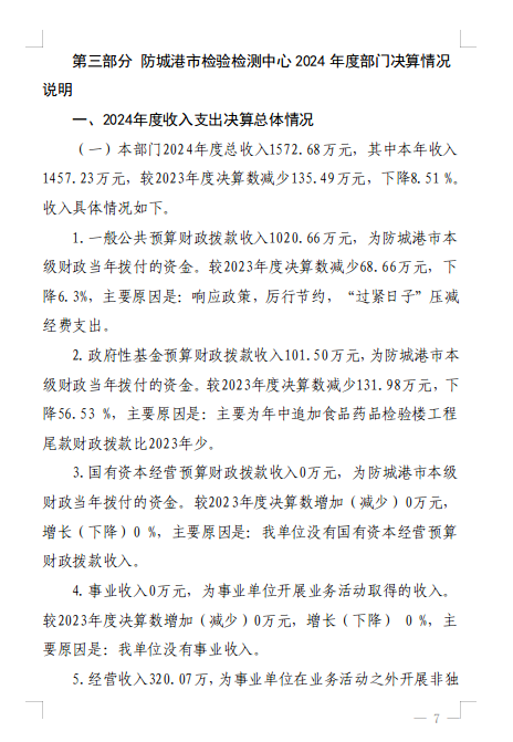 防城港市检验检测中心2024年度部门决算公开
