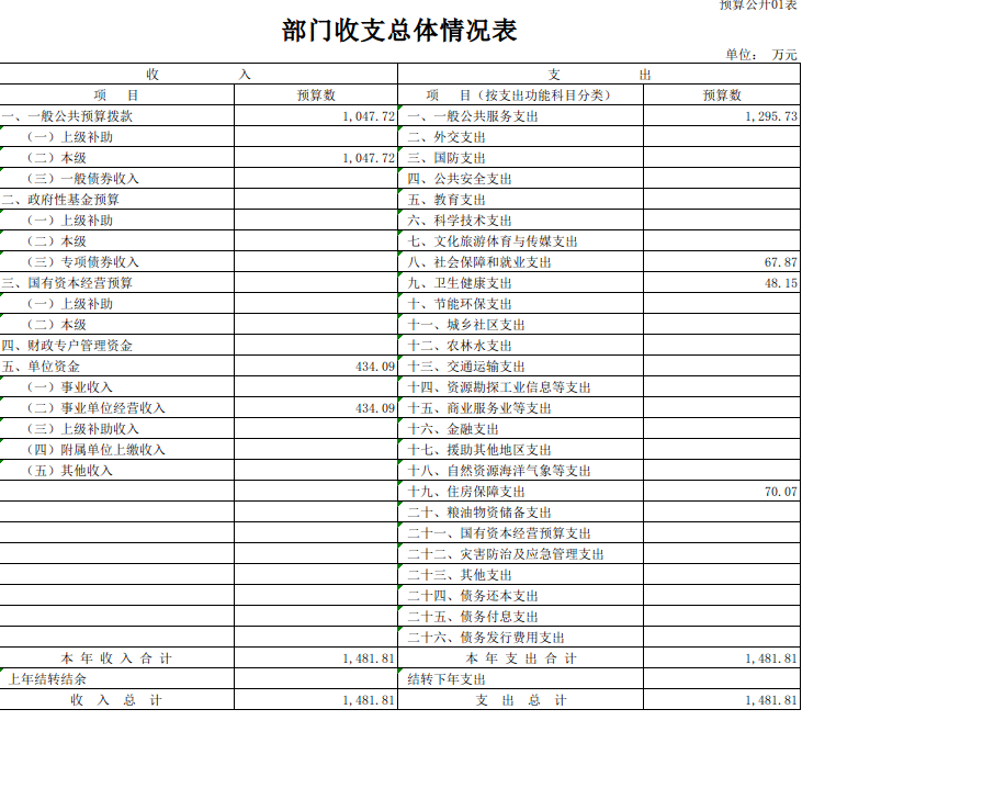一、部门收支总体情况说明