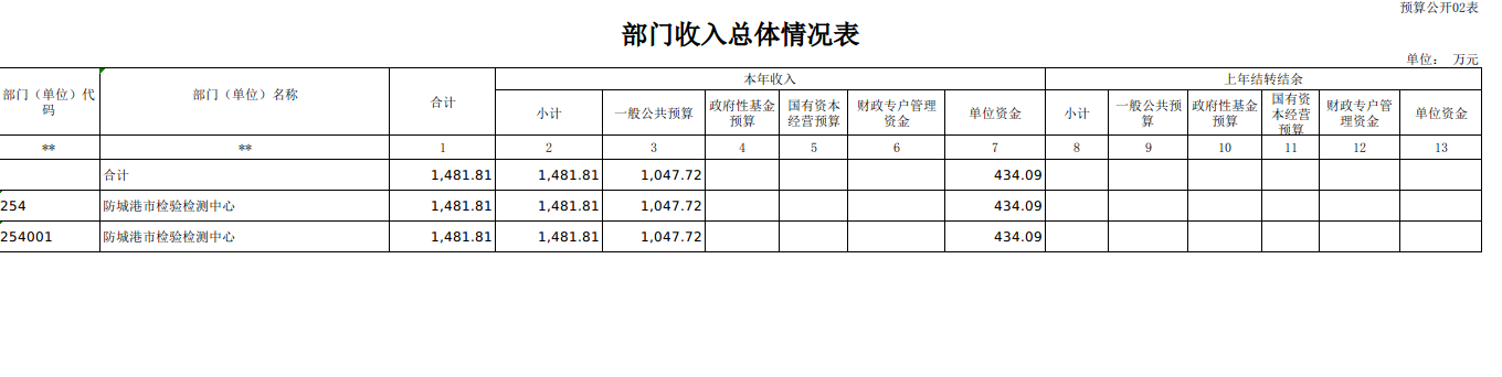 防城港市检验检测中心2025年部门预算公开