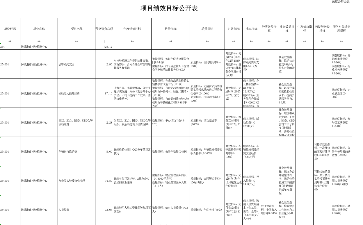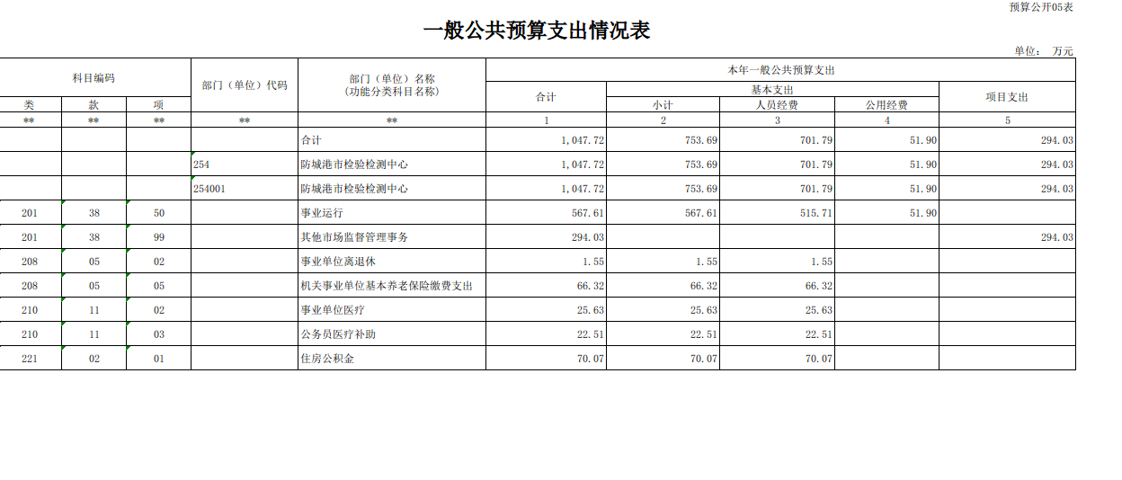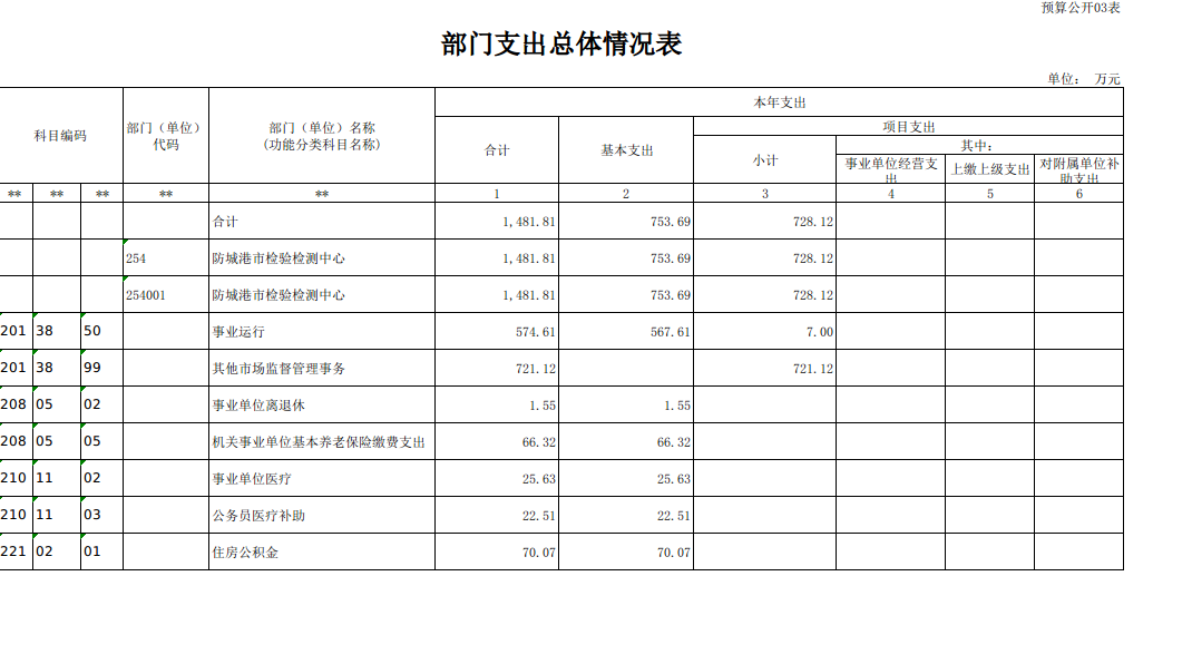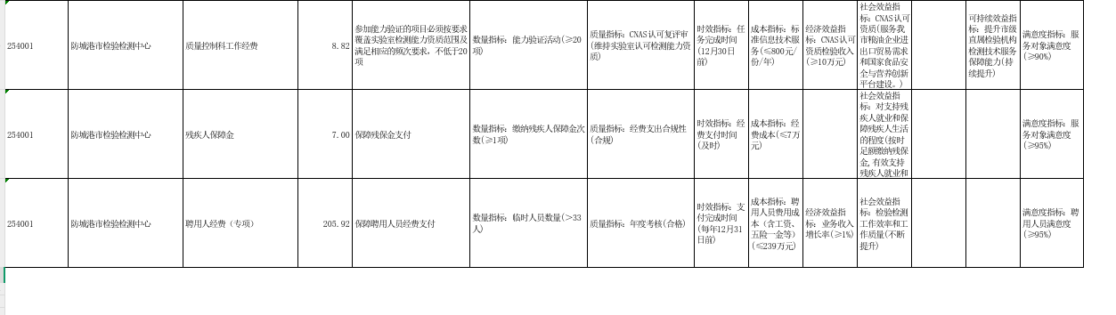 第四部分:防城港市检验检测中心2025部门预算报表