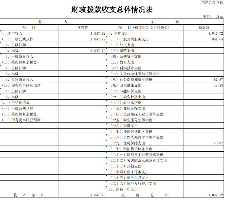 我部门财政拨款总收入1047.72万元,总支出1047.72万元。财政拨款收入同比增加154.27万元,增长17.27主要原因是工资社保基数增长,人员经费增加财政拨款支出同比增加154.27万元,增长17.27主要原因是工资社保基数增长,人员经费增加