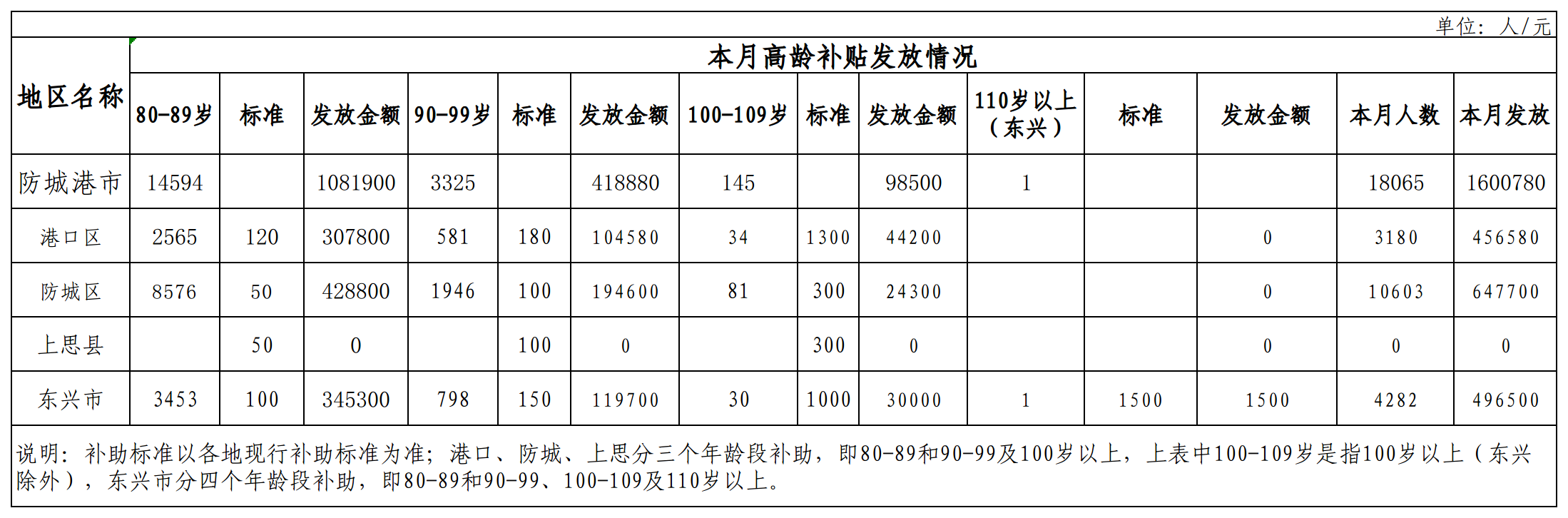 2025年11月高龄补贴发放情况统计表