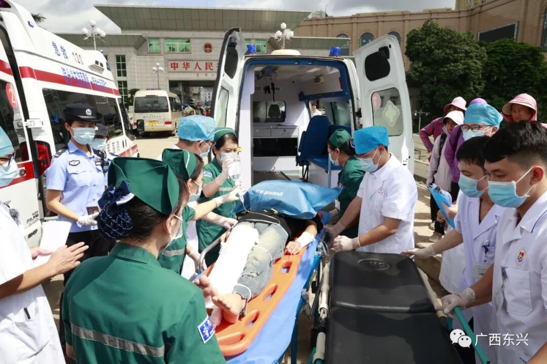 “指挥中心,越南芒街境内有中国游客因车祸急需回国救治,请快速启动‘1369生命直通车’机制……”7月12日上午,中国东兴市人民政府、越南芒街市人民委员会、广西医科大学第一附属医院共同主办了2023年中越边境地区(东兴—芒街)紧急医学救援联合演练,一场“生命接力赛”紧张上演。