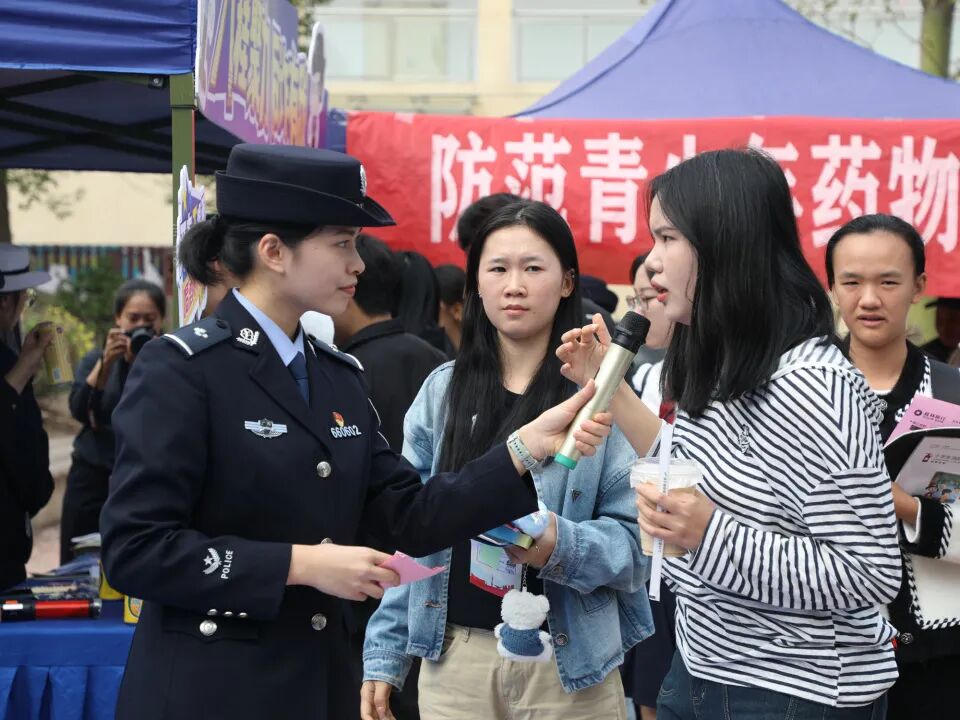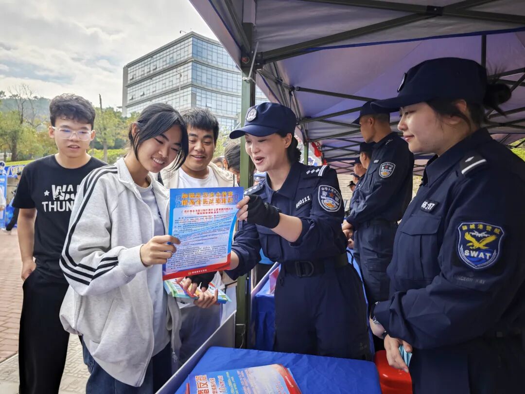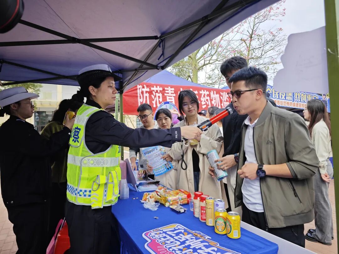 本次活动由防城港市公安局团委召集相关部门警种及桂林银行防城港分行等志愿服务单位,依托防城港职业技术学院校园文化嘉年华活动平台联合举办,旨在通过“法治引领+志愿聚力+精准宣教”三维联动,壮大法治群防力量,提升联盟宣防实操水平,向在校学生普及反诈知识,增强学生识诈防骗能力。同时,还加入反恐怖、网络安全、交通、禁毒知识宣传活动,切实筑牢校园安全防线。