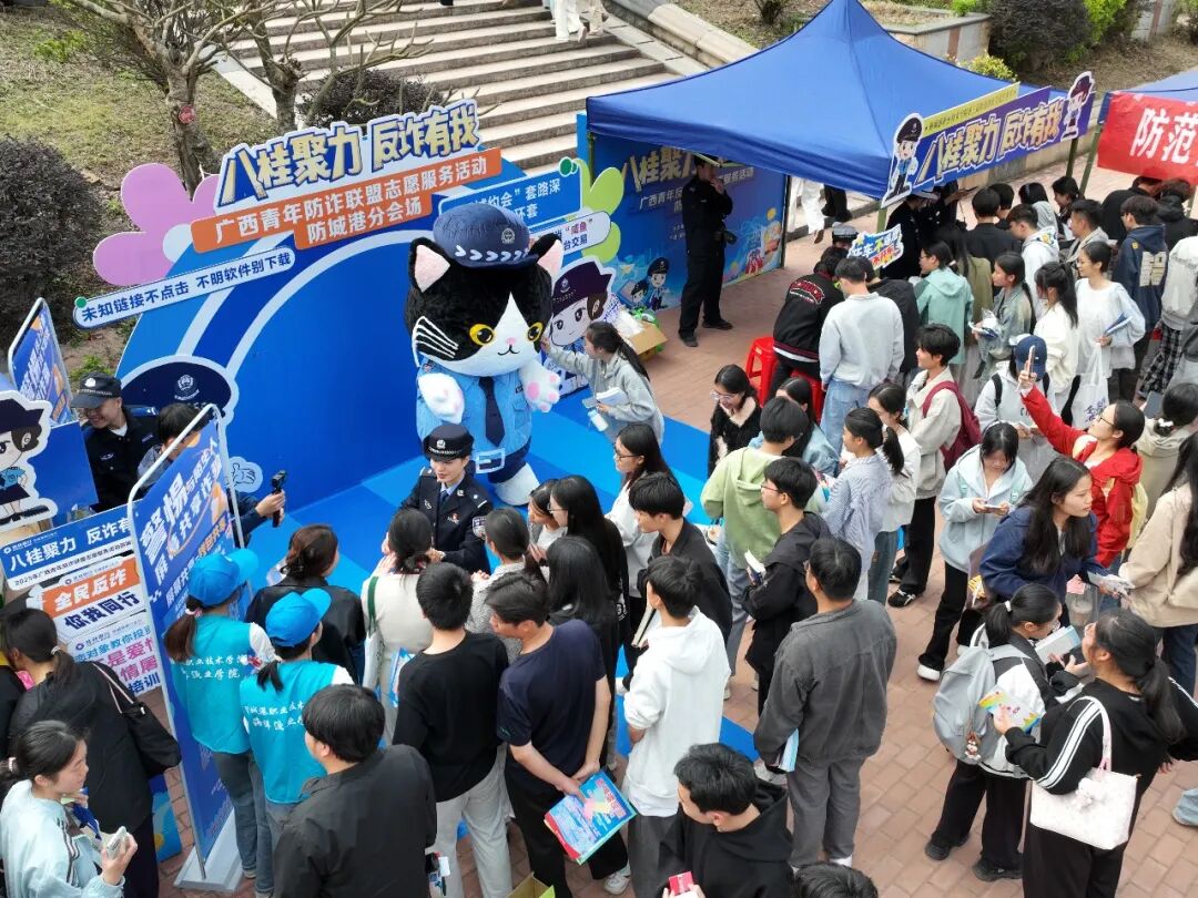 为提高青年学生法治知识水平、反诈实战能力及全市公安机关护校安全水平。12月10日,“八桂聚力 反诈有我”——2025年广西青年反诈联盟志愿服务活动(防城港分会场)在防城港职业技术学院顺利举行,共有1000余名师生参与,现场气氛热烈。