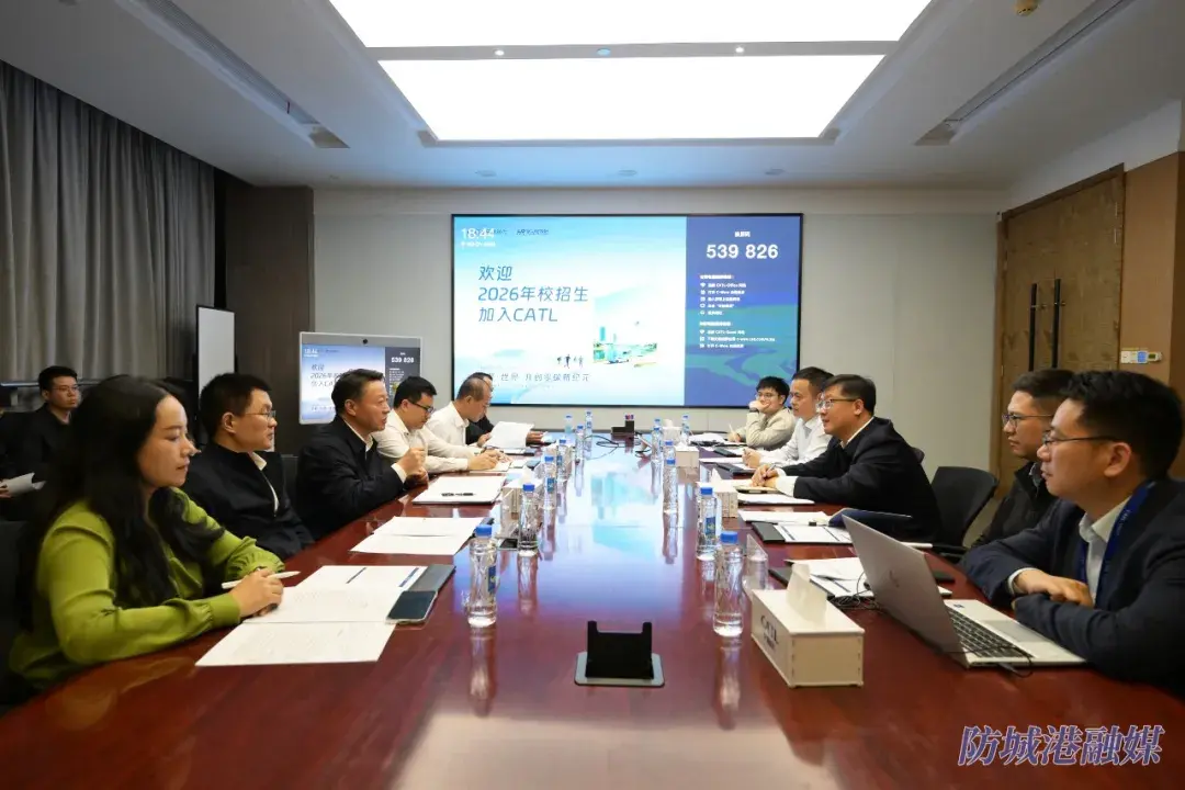 在宁德时代新能源科技股份有限公司,邱明宏与宁德市副市长党帅,宁德时代监事会主席、区域管理总裁吴映明深入座谈交流。邱明宏表示,防城港市与宁德时代合作建设的高性能磷酸铁锂前驱体(草酸亚铁)项目,是双方优势互补、共赢发展的重要成果。希望宁德时代加快项目建设进度,同时在新能源电池、关键材料、配套零部件等领域,助力防城港市引进更多优质产业链项目。防城港市将持续优化营商环境,强化要素保障,提供全流程高效服务,为企业投资发展保驾护航。党帅表示,宁德市将全力支持宁德时代拓展业务布局,推动企业高质量发展,同时加强与防城港市对接协作,实现产能互补、市场共享、合作共赢。吴映明表示,将完善多方联动机制,全力解决项目推进难题,推动合作项目尽快落地见效。