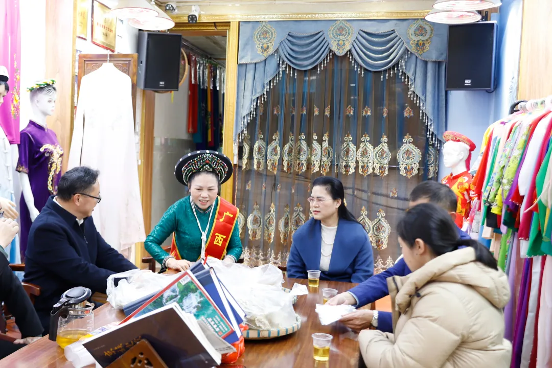 在东兴市江平镇,慰问团看望“广西工匠”樊文英,对其执着专注、精益求精、一丝不苟、追求卓越的工匠精神表示高度赞许。