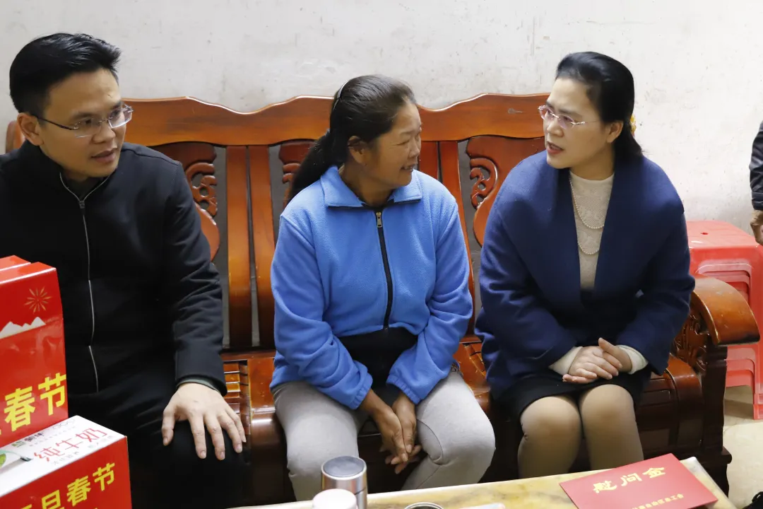 在火光农场,慰问团实地调研牛蛙养殖基地生产经营情况,详细了解企业工会建设与服务职工相关工作;入户慰问困难职工叶帮福、陈东梅,了解他们的生活、身体状况与需求、建议,并送上慰问金与节日祝福,鼓励他们保持积极心态,坚定信心,在党和政府及工会组织的帮助下克服眼前困难。