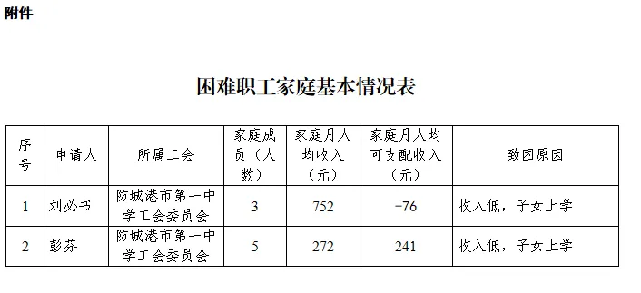 防城港市总工会困难职工帮扶中心关于困难职工建档名单的公示