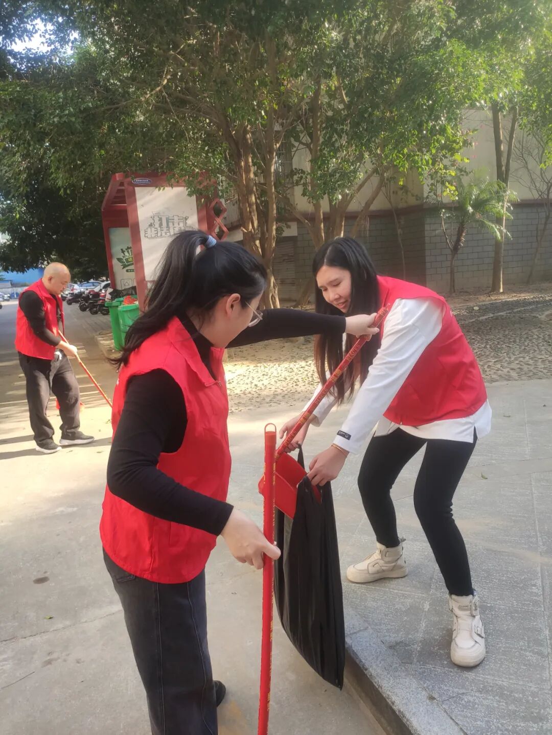 活动现场,党员志愿者们发扬“奉献、友爱、互助、进步”的志愿者精神,手拿扫把、铲子、垃圾袋等清洁工具,精神抖擞地走进沙埠社区,分组开展卫生清扫、杂物清理、小广告清除等工作。