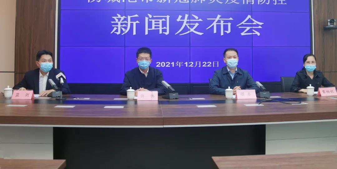 防城港市疫情处置应急指挥部于2021年12月22日在东兴市召开新冠肺炎疫情处置新闻发布会。邀请防城港市人民政府副市长许伟,防城港市卫生健康委员会党组书记、主任禤东,东兴市委常委、统战部部长,东兴市副市长覃杨妮介绍有关情况并回答记者提问。发布会由防城港市委宣传部副部长、市委网信办主任蓝剑主持。