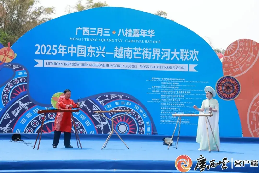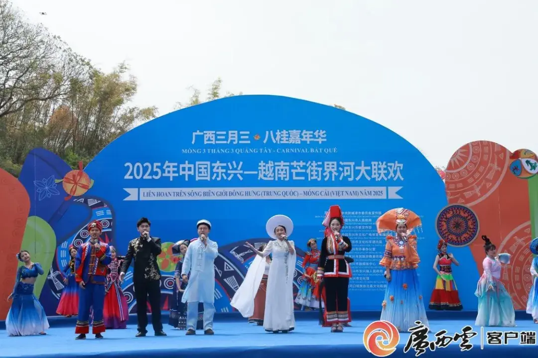今年4月,由中共防城港市委宣传部、东兴市人民政府指导举办的2025年中国东兴—越南芒街界河大联欢活动在东兴国门景区国旗街举行。中越两国艺术家与各界群众欢聚一堂,以艺术为媒,共同谱写中越友谊新篇章。