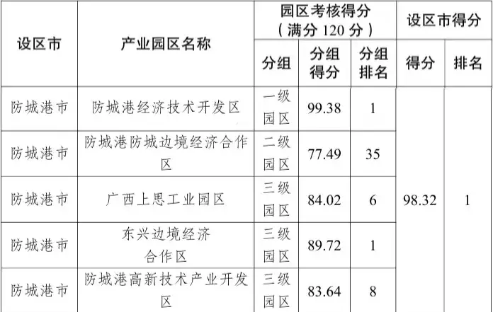 其中,两个园区斩获同级第一,防城港经济技术开发区在一级园区(16个)中排名第1;东兴边境经济合作区在三级园区(43个)中排名第1;广西上思工业园区、防城港高新技术产业开发区、防城港防城边境经济合作区稳步发展,共同构筑起我市产业发展的坚实矩阵。