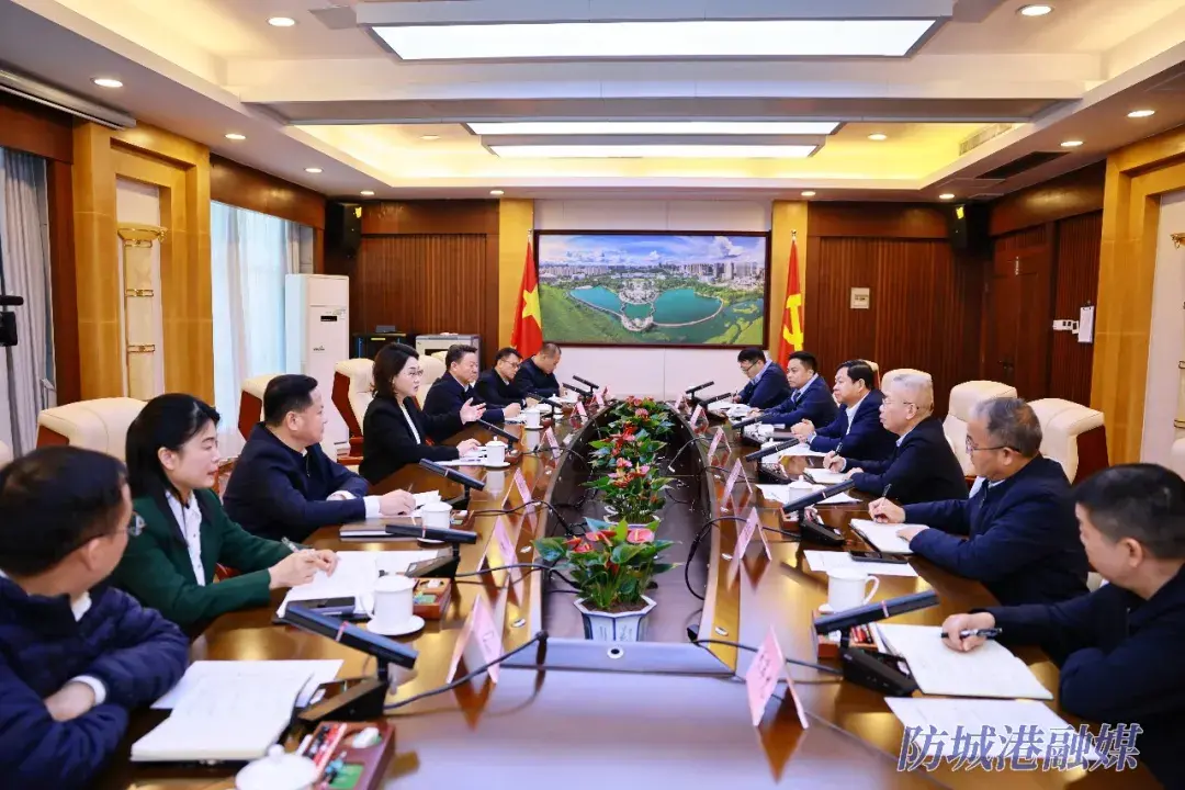 李斌对防城港市委、市人民政府一直以来给予柳钢集团的关心支持表示感谢,并简要介绍了集团“十四五”时期发展情况。他表示,防城港市多重发展机遇叠加,经济发展势头强劲,发展前景广阔,柳钢集团对双方开展更务实深入的合作充满信心。柳钢集团将坚持以“高端化、智能化、绿色化、高效化、特色化、国际化”“六化”为转型方向,紧密对接防城港市发展需求,抓好“十五五”重大项目谋划,加大投资力度,深度融入防城港市产业发展和城市建设,推动双方在更宽领域、更深层次实现优势互补、协同共进。同时更好发挥链主企业引领带动作用,带动产业链上下游协同发展,不断延链补链强链,为防城港市加快建设现代化临港工业城市和经济社会高质量发展作出新的更大贡献。