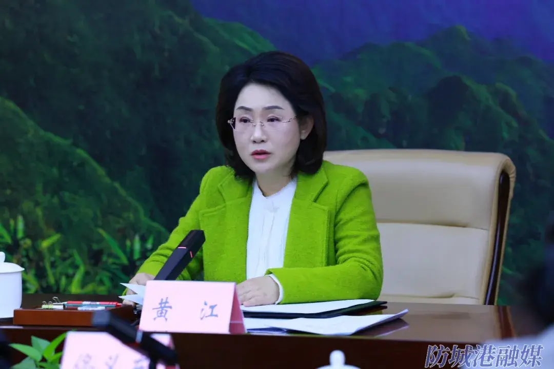 黄江代表中共防城港市委,向各民主党派防城港市委代表大会的成功召开和新一届领导班子的顺利当选表示祝贺,向换届后不再担任民主党派防城港市委领导班子职务的同志致以敬意,向各民主党派长期以来为防城港市发展作出的贡献表示感谢。她指出,过去五年,各民主党派牢牢把握民主和团结两大主题,认真履行政治协商、民主监督、参政议政职能,紧扣全市高质量发展建言献策,深入基层调查研究,认真反馈社情民意,参与专项民主监督,深入开展社会服务、助力乡村全面振兴等工作,各领域工作取得新成效。