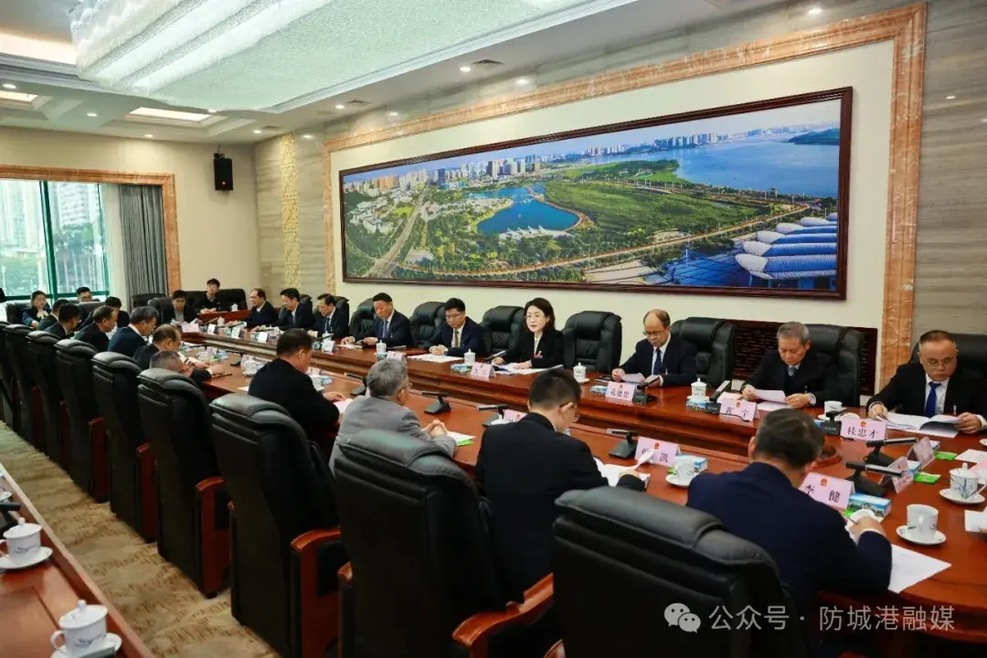 2月1日下午,出席自治区十四届人大五次会议的防城港市代表团,在广西人民会堂防城港厅召开全体会议。