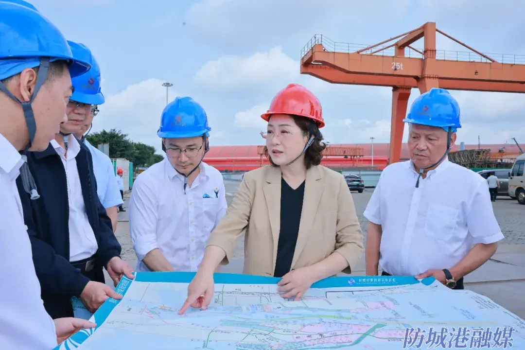 随后,黄江来到榕木江作业区西6号泊位,详细了解向海经济基础设施建设及规划发展情况,现场协调解决存在的困难与问题。在防城港企沙港区赤沙作业区1、2泊位工程项目现场,黄江在听取有关情况汇报后强调,要深耕向海经济,坚持陆海统筹、全域向海,高标准编制实施向海经济发展规划,进一步做好“海”的文章。要高效统筹推进各项工作,加快已纳入规划且开发条件成熟的若干泊位建设,强化港口核心资源整合与能级提升,积极融入平陆运河经济带建设,着力提升港口和航道在建设、生产、运营、管理、服务等各环节的全流程协同水平,大力推动向海经济高质量发展。各有关部门要主动靠前服务,提升服务效能,强化要素保障,确保重大项目建设有力有序推进。