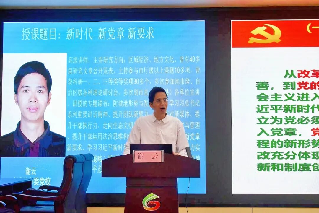 防城港市委党校高级讲师谢云作《新时代新党章新要求》专题授课。