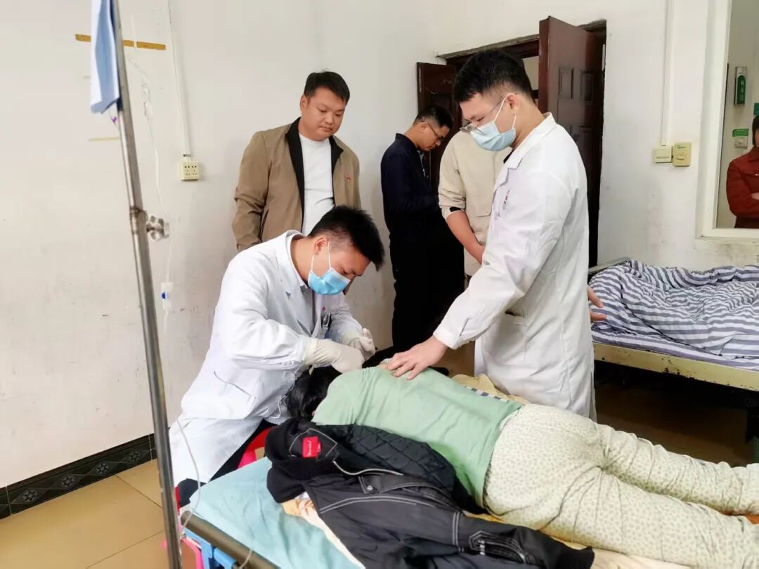 活动现场,专家团队分工明确、协作高效。心血管内科许家华副主任针对秋冬季心血管疾病高发特点,深入病房为患者进行细致问诊与辨证施治,就高血压、冠心病的日常调护、规范用药及应急处理等提供个性化诊疗方案与健康指导;疼痛科杨世君副主任运用针刀技术,为多位患者解除病痛,其中包括因腰椎损伤长期无法翻身的六旬长者,以及罹患高血压眩晕症的八旬老妇;病案与医保管理专家结合典型病例开展“代入式”培训,围绕病历书写规范、诊疗流程优化等议题,与基层医务人员深入交流,有力促进医疗质量与管理水平提升。