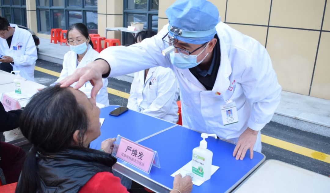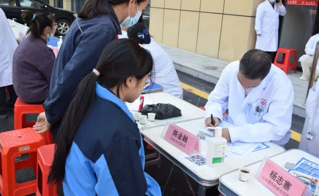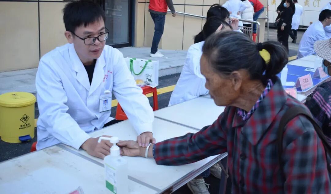 各科专家耐心细致地为居民提供医疗服务。