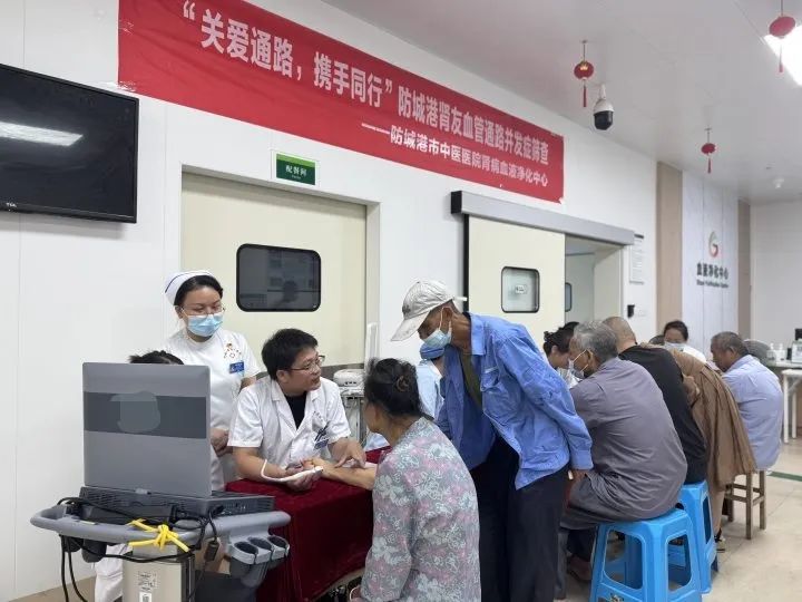 6月12日,防城港市中医医院门诊大楼五楼血液净化中心候诊大厅内温情涌动,气氛热烈。一场以“关注肾脏疾病及透析通路,早发现早诊治,共同维护生命线”为主题的肾脏疾病义诊及血透通路免费筛查活动在此展开。此次活动由我院肾病科血液净化中心发起,旨在提升公众对肾脏健康的认知,并重点保障血液透析患者的长期生存质量。