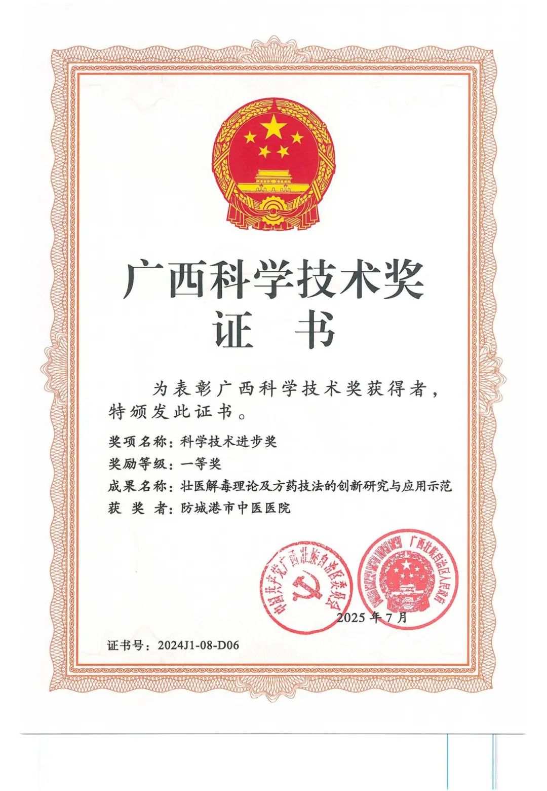 防城港市中医医院喜获广西科学技术进步奖一等奖
