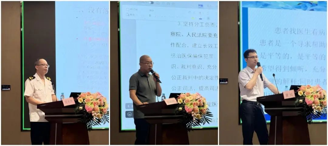会上,防城港市疾控中心(卫生监督所)黄永伟、防城港市医保局稽核科吴群峰、广西东方意远律师事务所黄铖等三位专家,分别从实际案例出发,让医务人员从患者角度出发换位思考,维护患者利益,强调医疗卫生机构依法执业的重要性,对医疗卫生相关法律法规知识进行详细的解读,并以实际案例警醒医务人员要始终坚守底线,规范诊疗行为,严格依法执业,注重医患沟通与病历的书写。