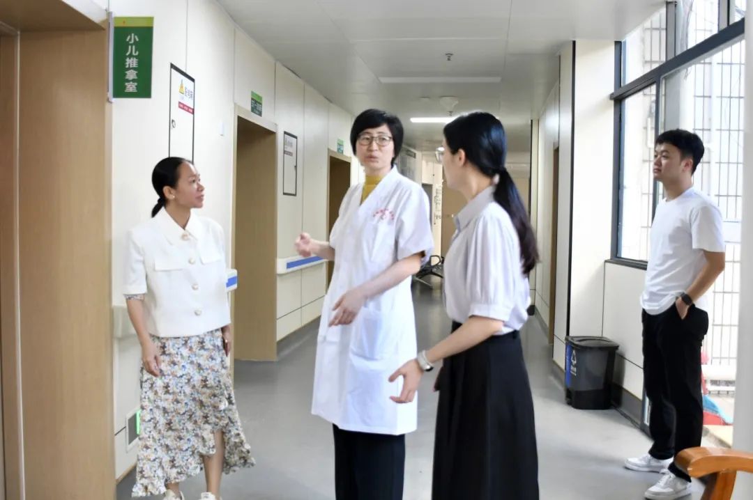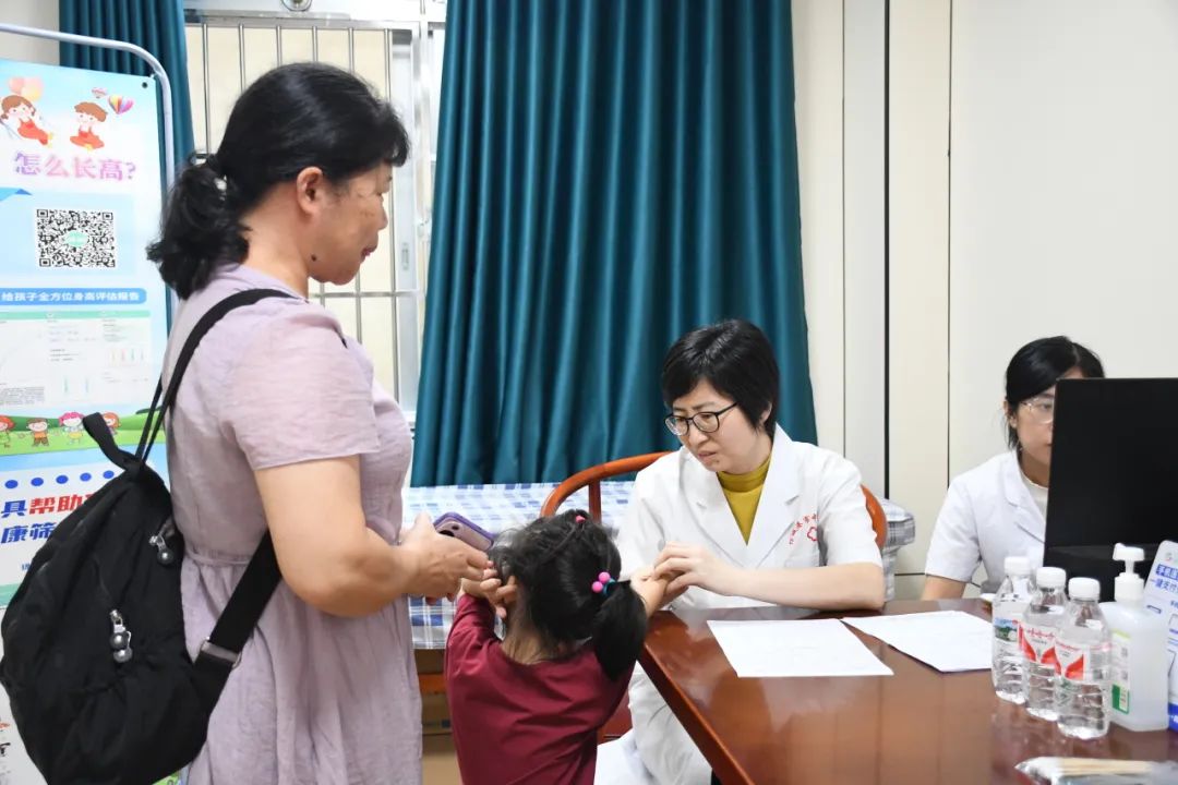 授牌结束后,王静教授到我院儿科进行实地调研,并到门诊为小朋友进行体格检查及生长发育评估,耐心解答家长们对儿童身高、体重、性发育等方面的疑惑,提供个性化指导建议,向家长普及知识,教导科学育儿的方法。