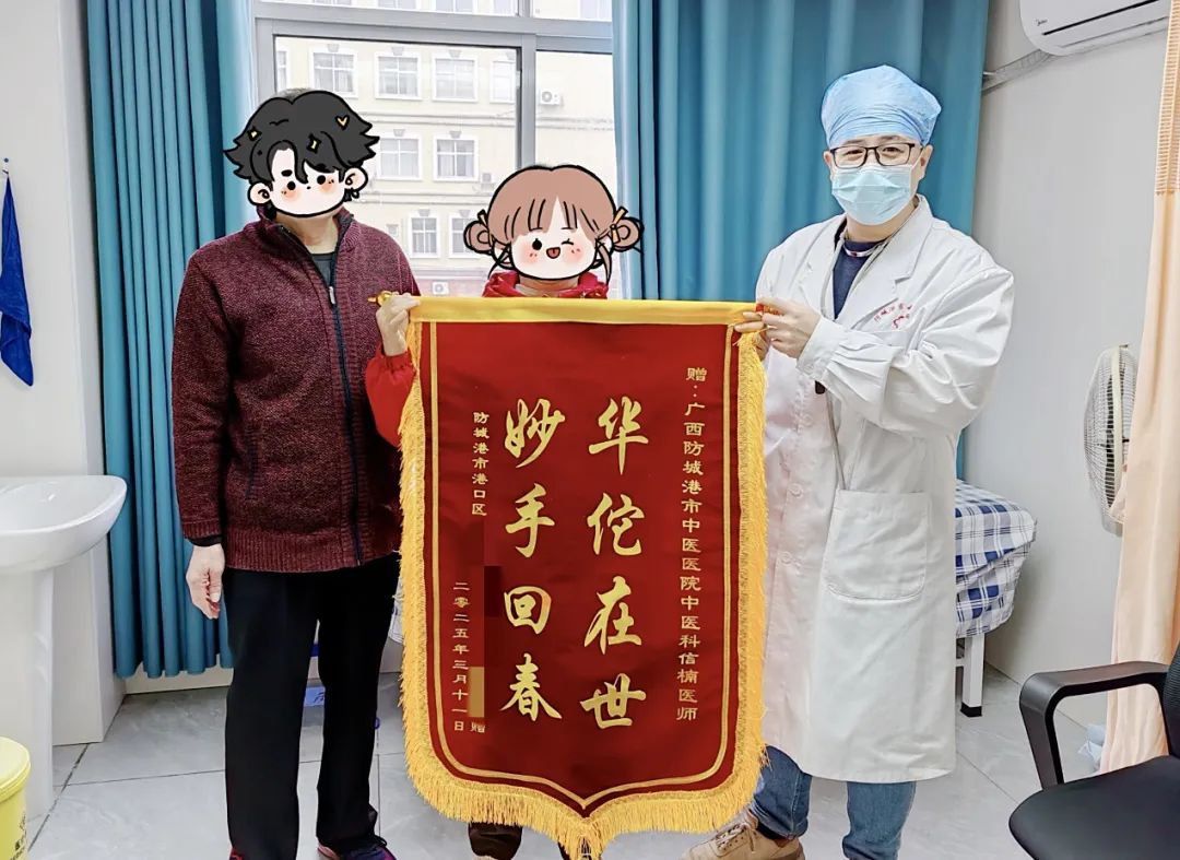 60岁的曹阿姨长期受慢性胃炎的折磨,10年间四处求医问药却始终未能根治。信楠接诊后,分析舌脉,以中焦湿热立论制定了个性化治疗方案。经过一段时间调理,曹阿姨病情显著改善,生活质量极大提升。为表感激,她特制一面写有“华佗在世 妙手回春”的锦旗送给信楠。