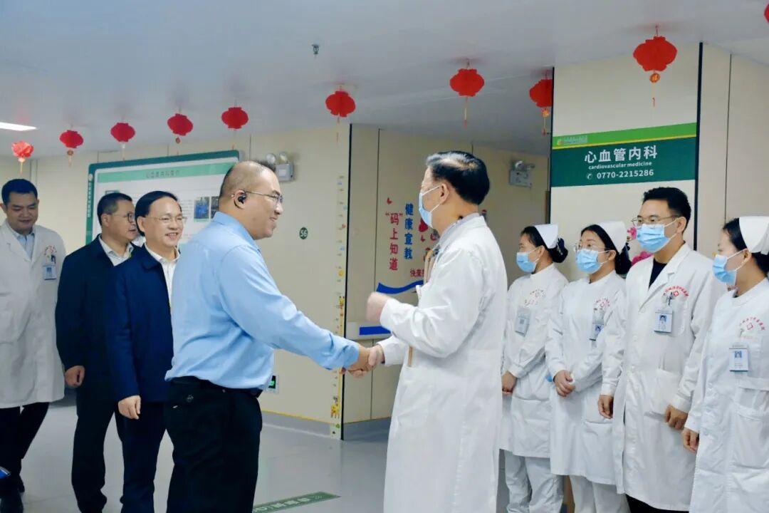 新春启新章,奋进正当时。2月24日(农历正月初八),春节假期后首个工作日,我院党委副书记、院长唐宏亮,党委副书记、纪委书记赵权带领全体领导班子及相关职能科室负责人,分赴行政、临床、门诊、医技、急诊等各科室与重点岗位,开展开工团拜慰问活动,向全体医务人员送上新春祝福与诚挚问候,为新一年工作鼓劲加油。