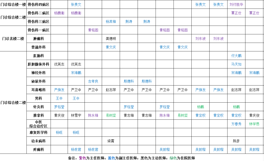 2023年“中秋、国庆”假期门诊医师出诊一览表