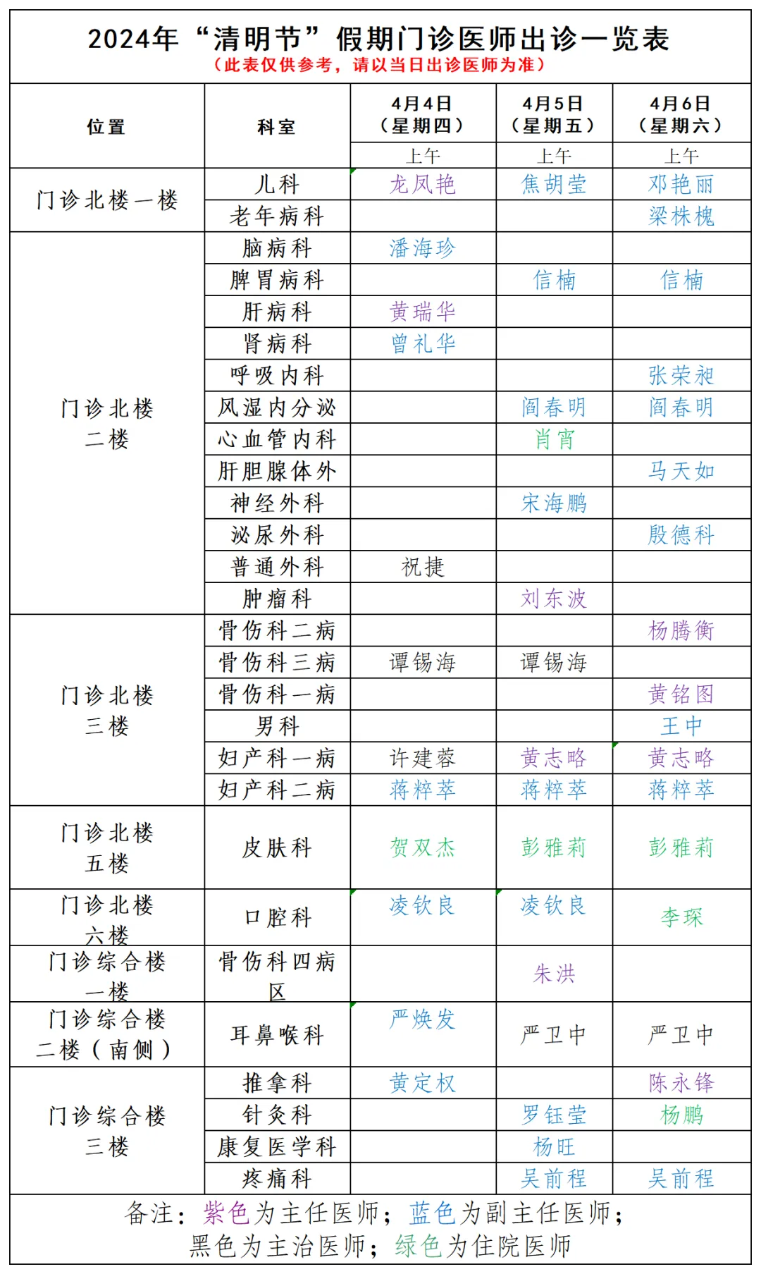 清明节门诊排班表