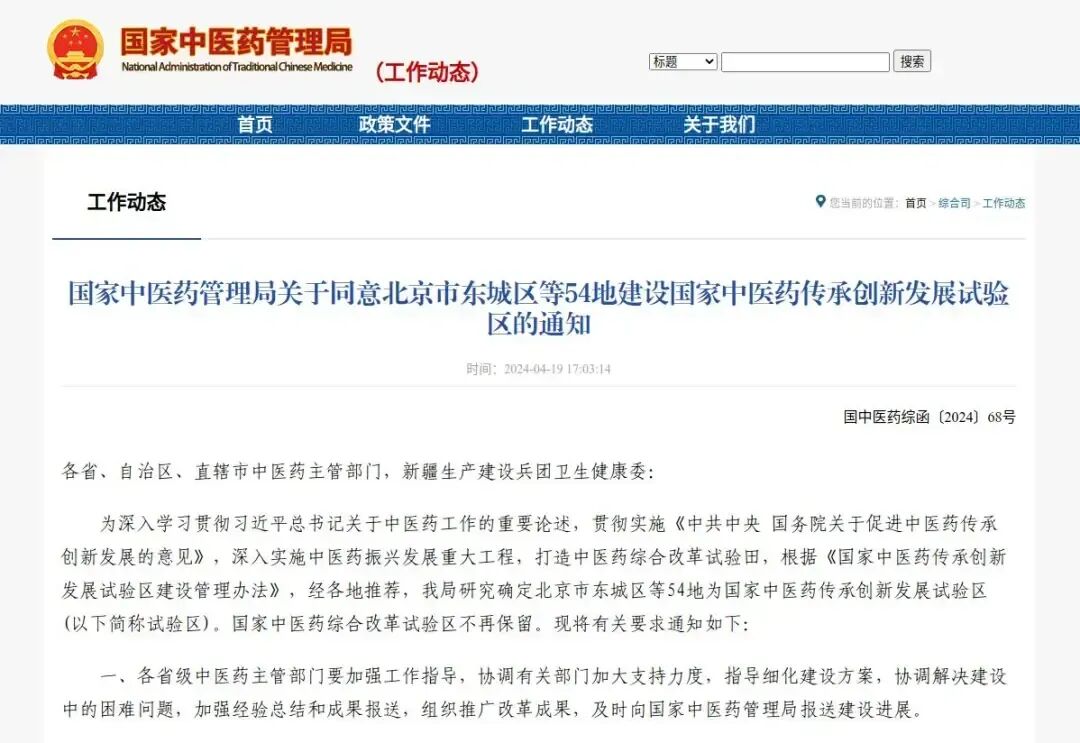 喜报!防城港市获批建设国家中医药传承创新发展试验区近日,国家中医药管理局发布关于同意北京市东城区等54地建设国家中医药传承创新发展试验区的通知,防城港市榜上有名,是广西壮族自治区唯一一个获批建设国家中医药传承创新发展试验区的地市。2019年6月14日,国家主席习近平在出席上海合作组织成员国元首理事会第十九次会议时宣布:“支持在防城港市建立国际医学开放试验区,继续推动上海合作组织医学创新合作。”自此,防城港国际医学开放试验区建设拉开了帷幕。2021年5月15日,国家发展改革委、外交部、国家卫生健康委、国家中医药管理局等11部委联合出台的《关于支持防城港国际医学开放试验区改革创新若干政策措施的通知》明确提出:支持防城港市创建国家中医药综合改革试验区(已更名为“国家中医药传承创新发展试验区”)。建设国家中医药传承创新发展试验区是深入学习贯彻习近平总书记关于中医药工作的重要论述和关于支持在防城港市建设国际医学开放试验区的重要讲话精神,贯彻实施《中共中央国务院关于促进中医药传承创新发展的意见》,深入推进中医药振兴发展重大工程的重大举措。防城港市委市政府高度重视,在自治区卫生健康委、自治区中医药管理局的精心指导下,防城港市卫生健康委及时组织防城港市中医医院等部门单位,主动作为,深入调研,总结中医药改革发展中的成功经验,聚焦制约防城港市中医药传承创新发展的重点难点问题,立足机制改革和政策完善,凝炼进一步深化改革的主题,制订切实可行的建设方案,得到了国家中医药管理局的高度认可。