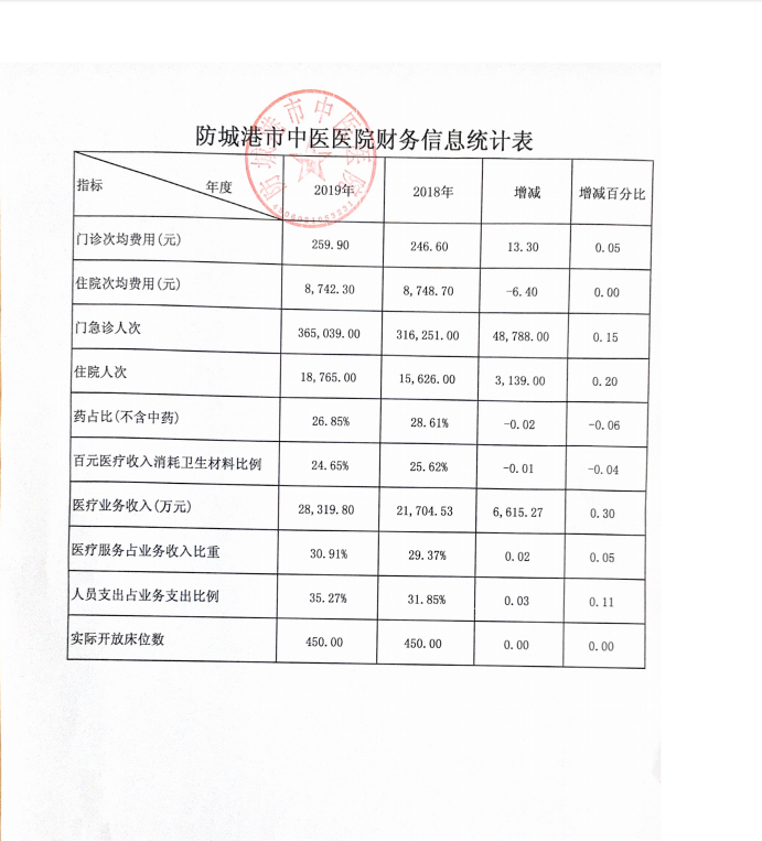 防城港市中医医院2018、2019年财务信息公开